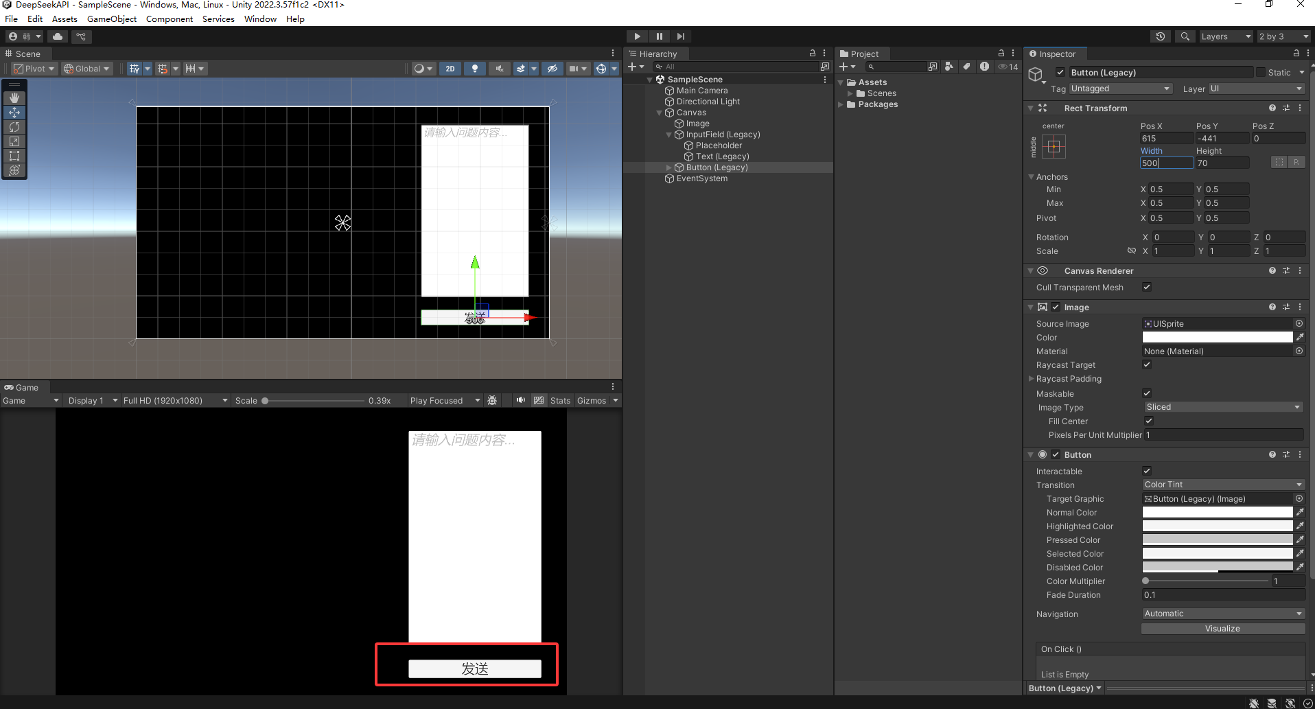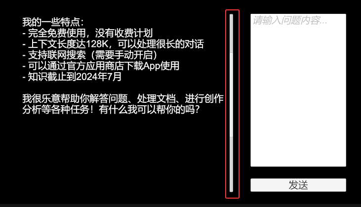 输入相关问题 点击发送按钮