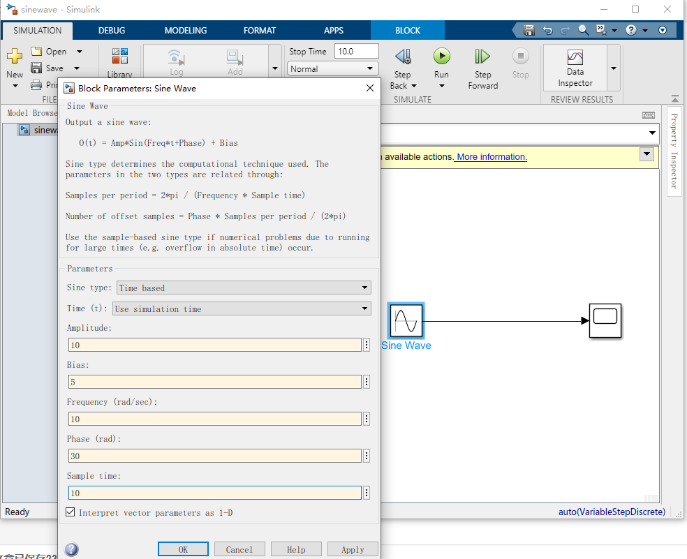 a、正弦信号源Sine wave