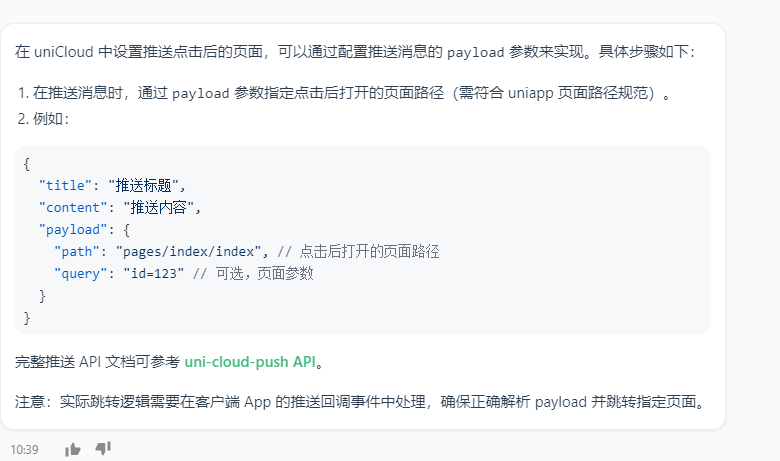 设置通知栏消息用户点击跳转指定路径后端发送的时候加payload里面的path