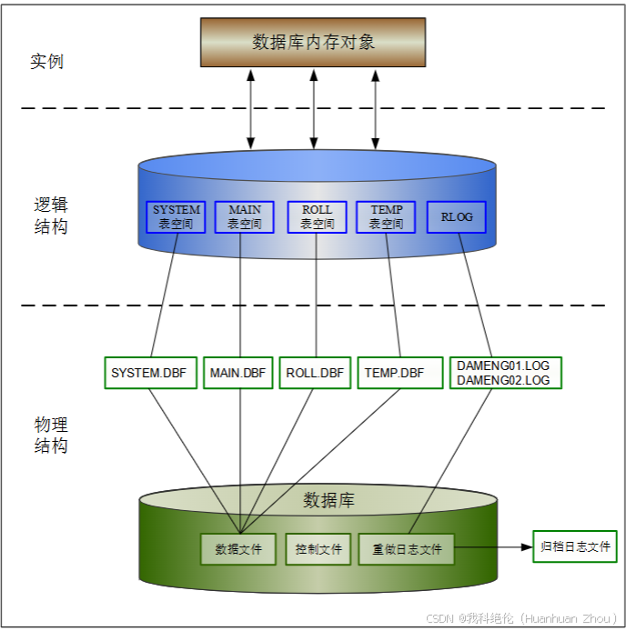 DM数据库的物理存储结构采用分层设计理念,从功能上可划分为配置层、核心数据层、日志层和辅助文件层四大模块,各模块通过标准化的交互机制实现数据的有序管理。