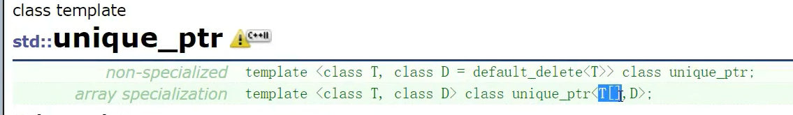 unique ptr特化了一个这个版本,【】没问题,但是第一个unique模版参数是在哪穿的?