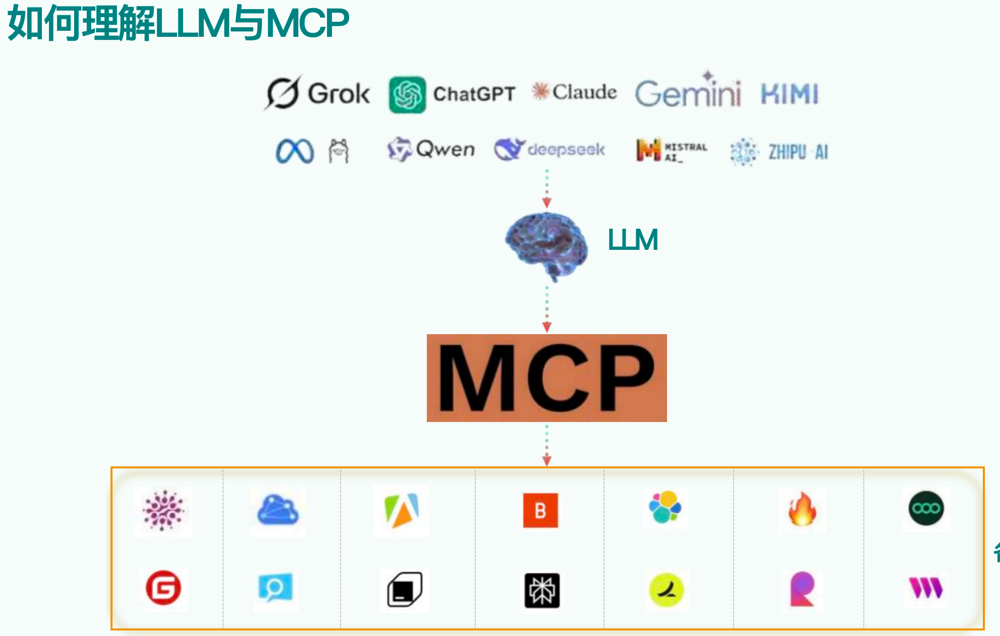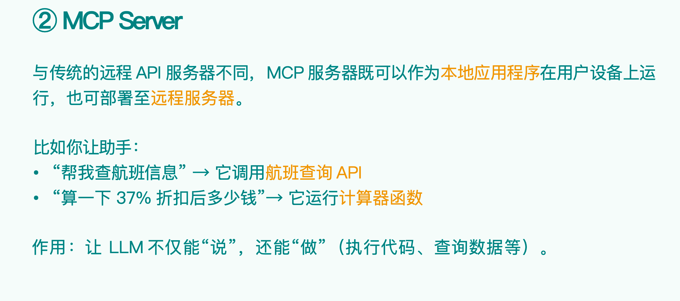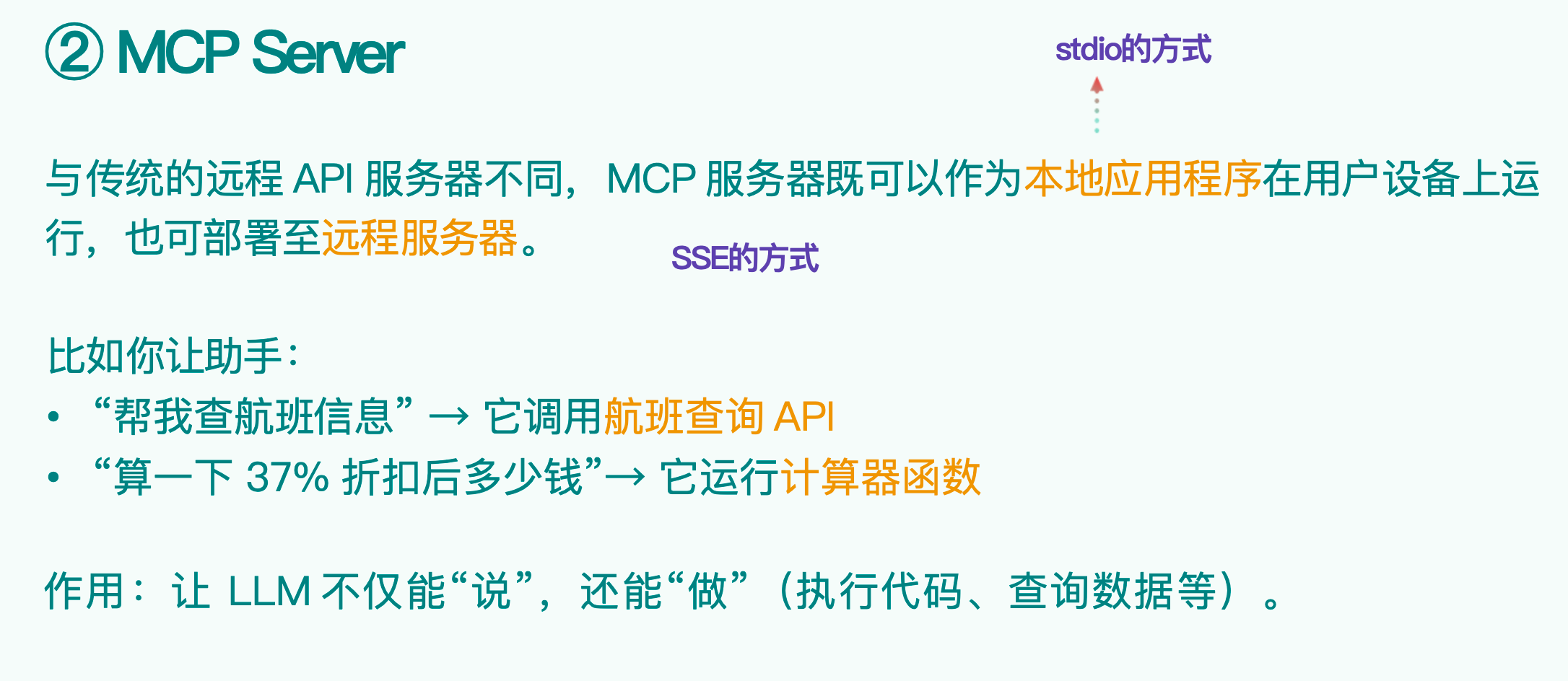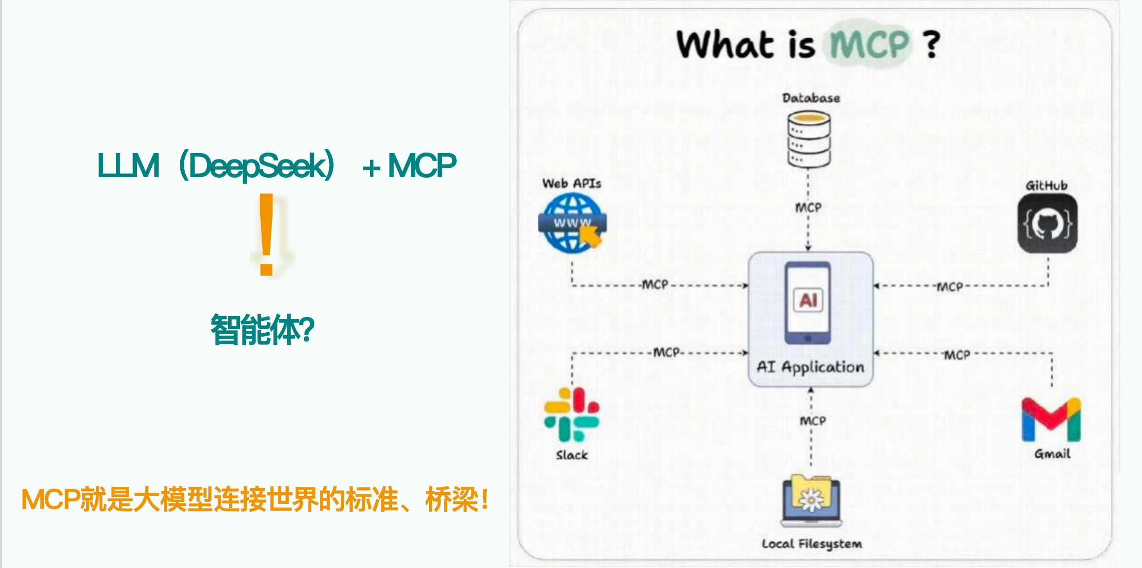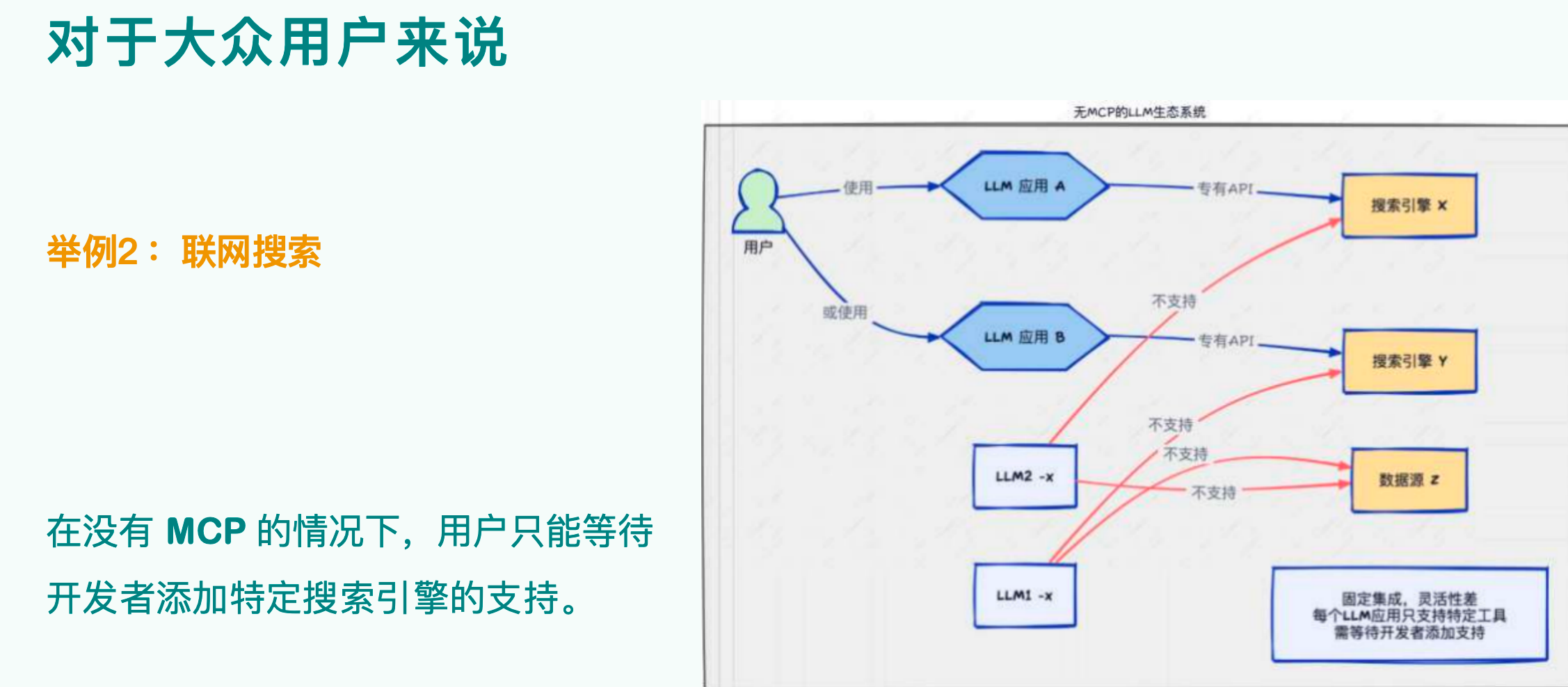 Agent 需要调用外部工具和API、访问数据库、执行代码等。 --> mcp