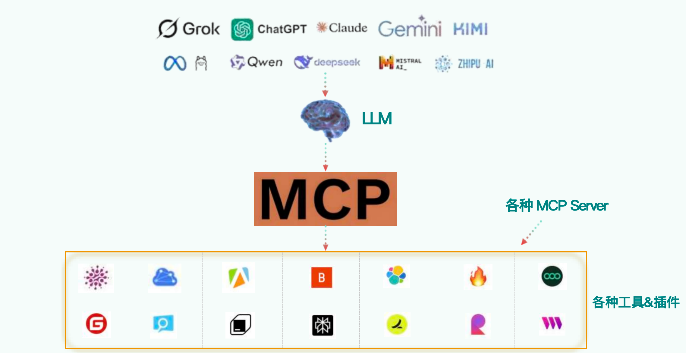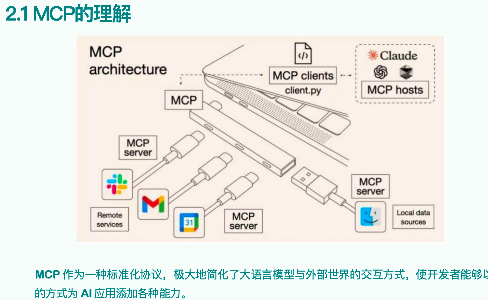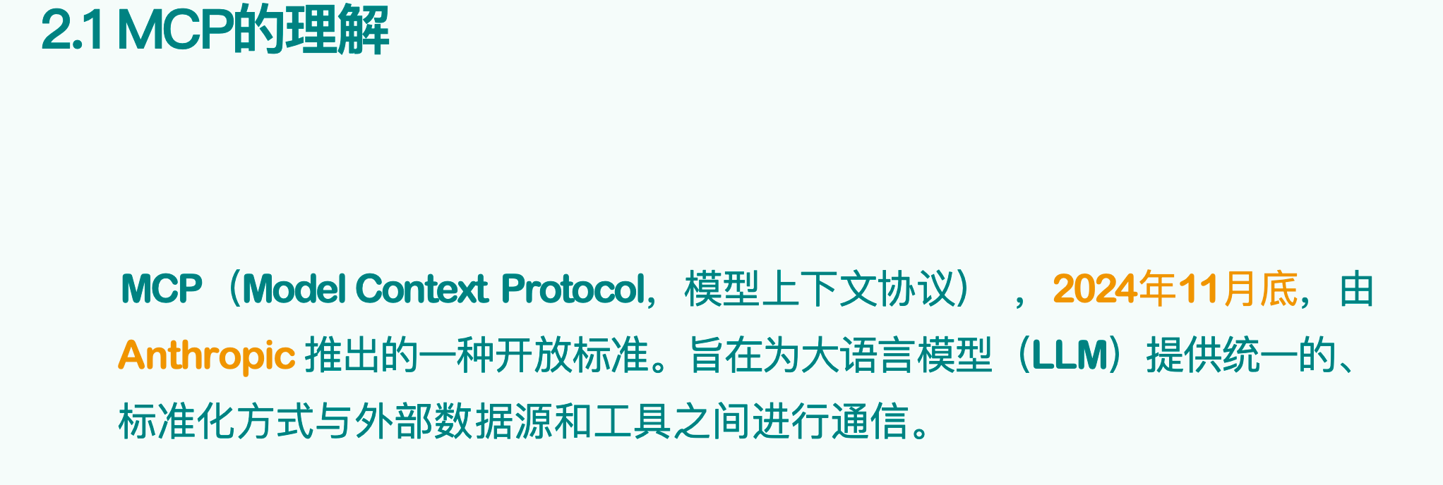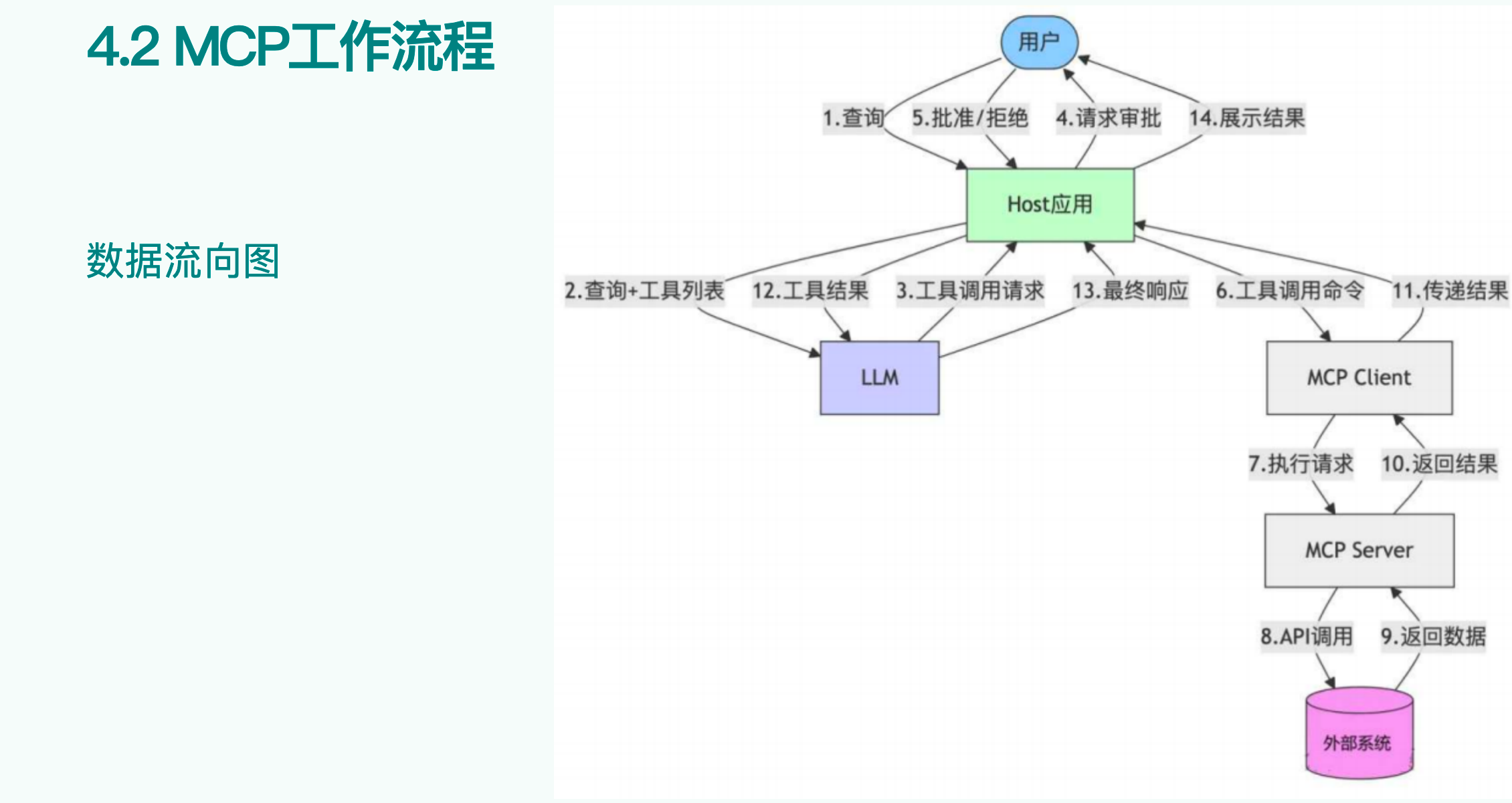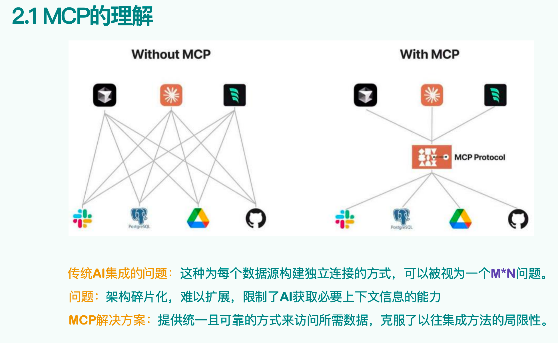 Agent 需要调用外部工具和API、访问数据库、执行代码等。 --> mcp
