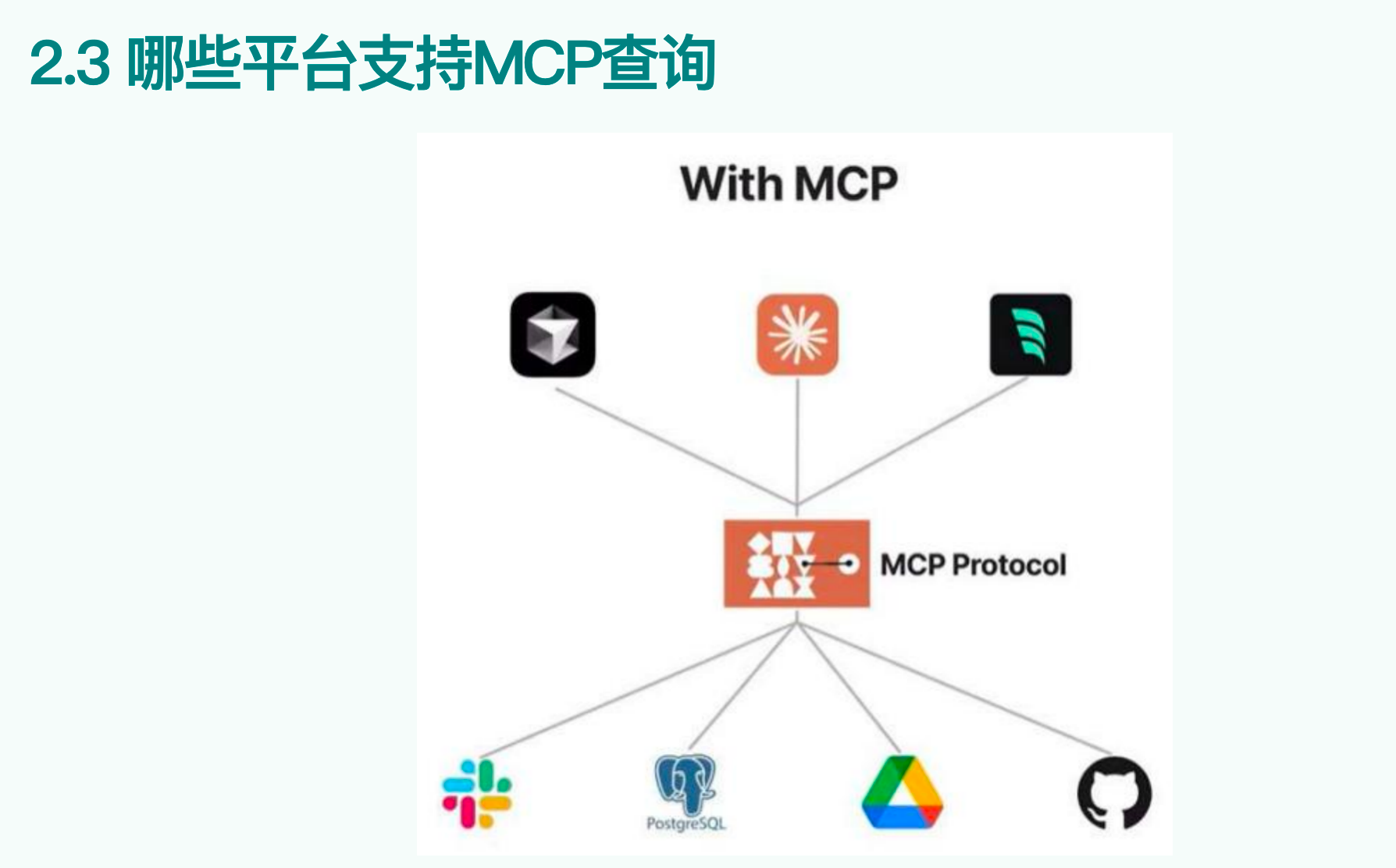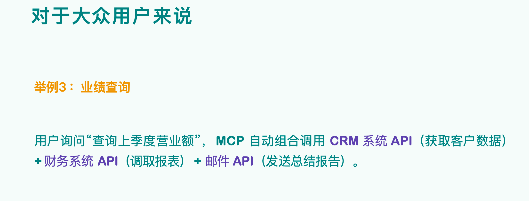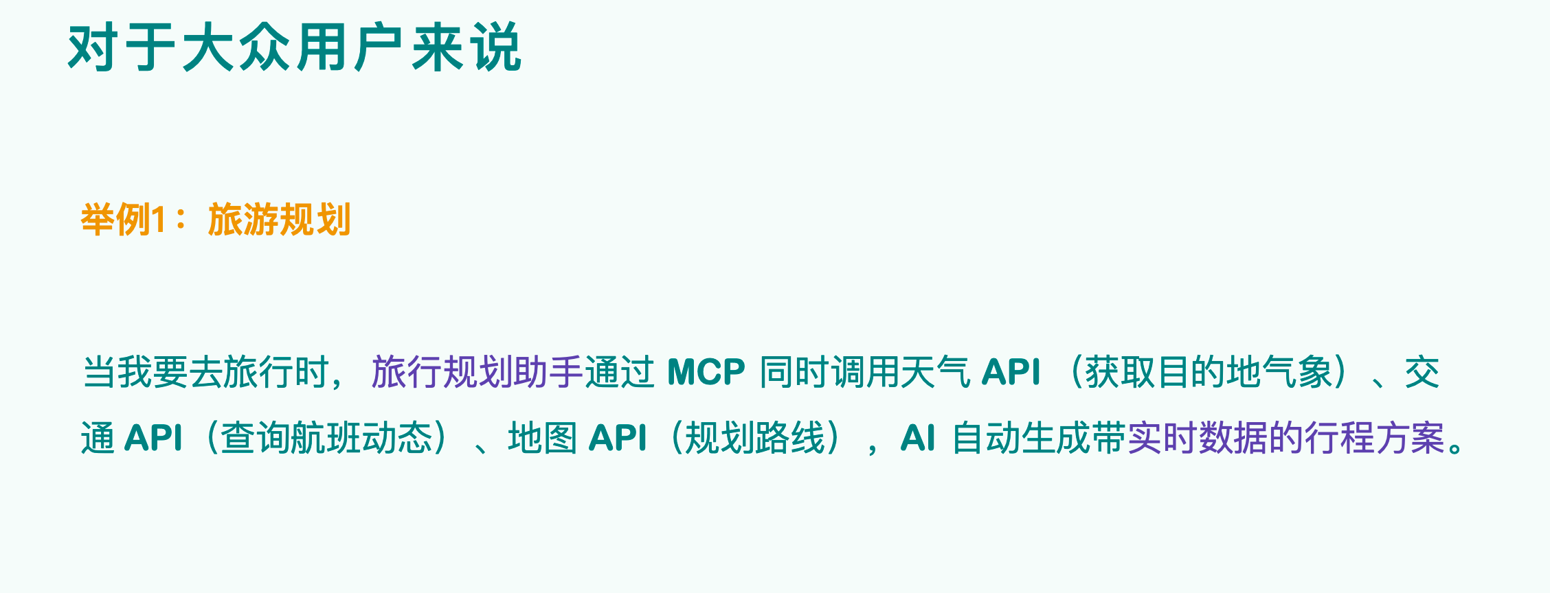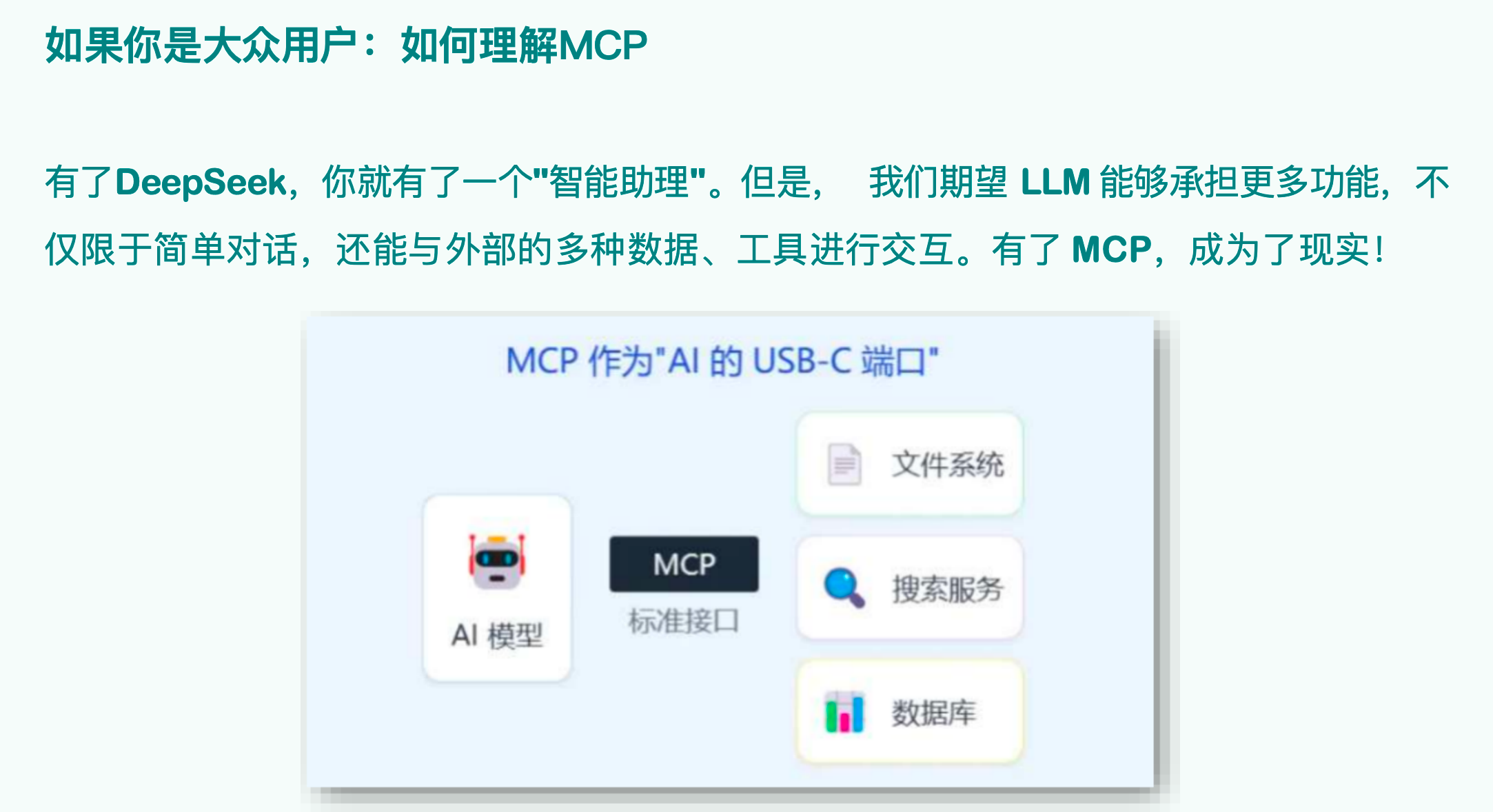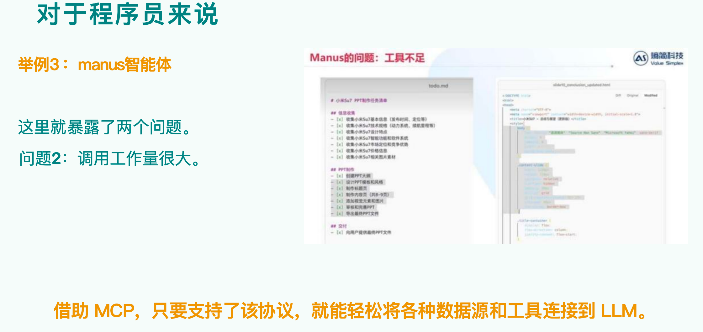 Agent 需要调用外部工具和API、访问数据库、执行代码等。 --> mcp