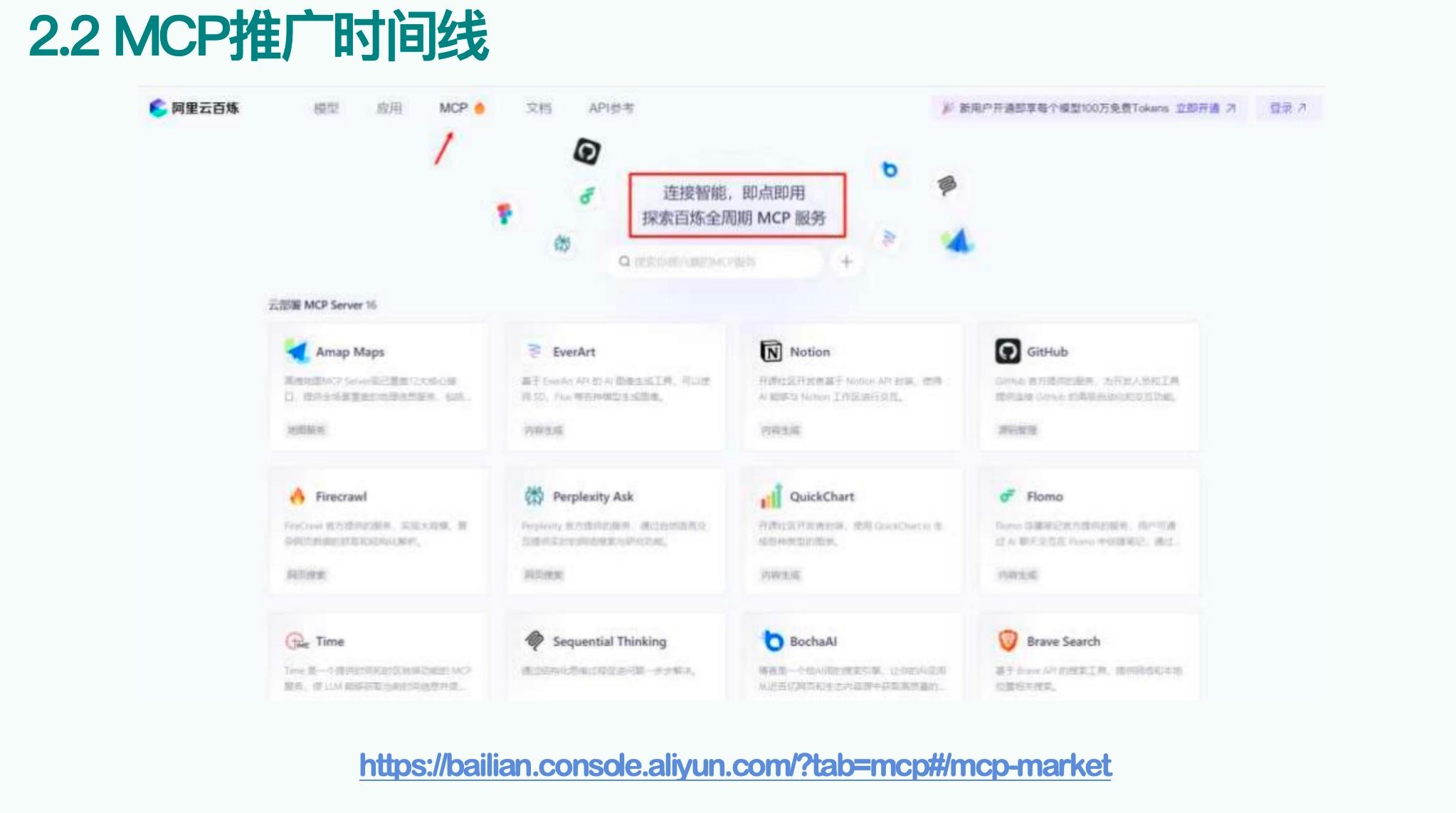 • 阿里云百炼: https://bailian.console.aliyun.com/?tab=mcp#/mcp-market
