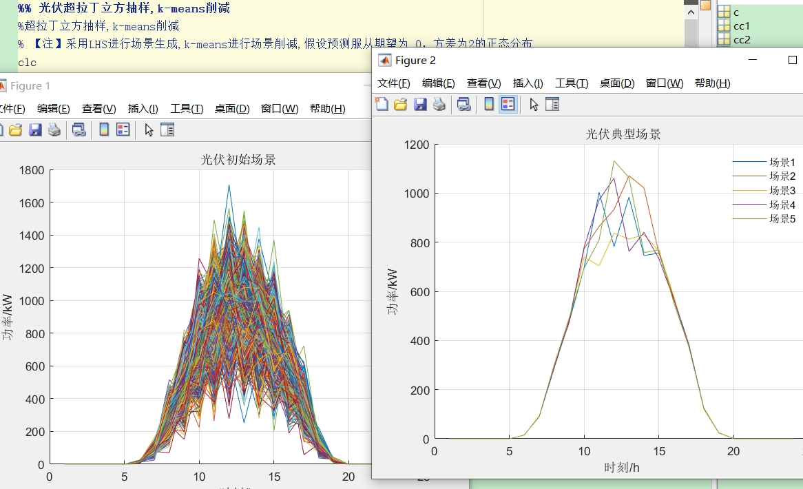 通过拉丁超立方抽样生成场景,再利用k - means聚类进行场景削减,我们能够有效地处理光伏不确定性带来的大量场景数据,为光伏系统的进一步分析和决策提供便利。这种方法在实际的光伏电站规划、电力系统调度等方面都有着重要的应用价值。