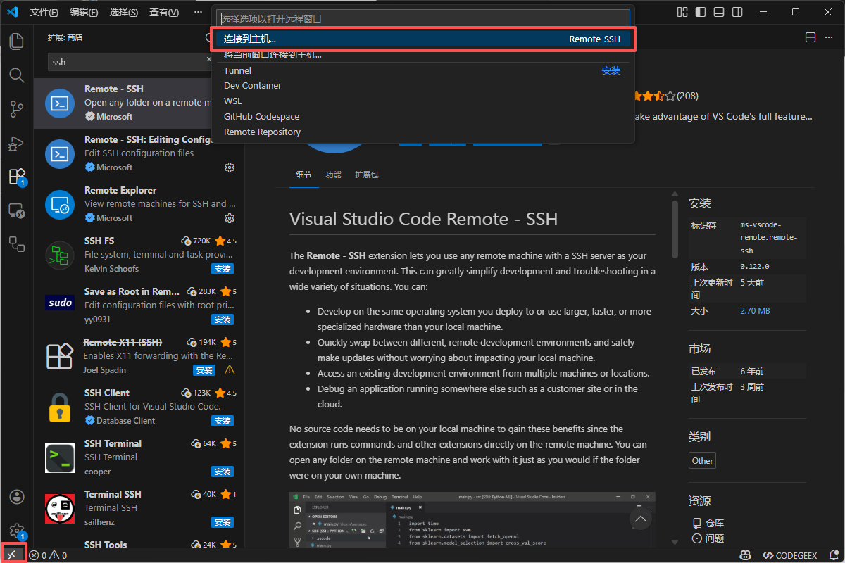 VS Code 的核心功能依赖于插件,远程开发功能官方封装在 Remote - SSH 扩展中。