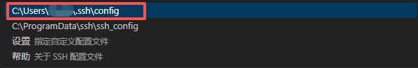 - 在弹出的选项中选择 Configure SSH Hosts... -> C:\Users\你的用户名.ssh\config 。