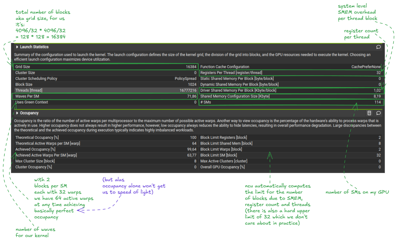 换句话说,指令并行性(在给定周期内开始执行指令的线程数)限制为每个 SM 一次最多 128 个线程(4 个 32 宽的 warp 指令),而并发性(调度器中跟踪并有资格运行的线程数)扩展到 2048 个线程。