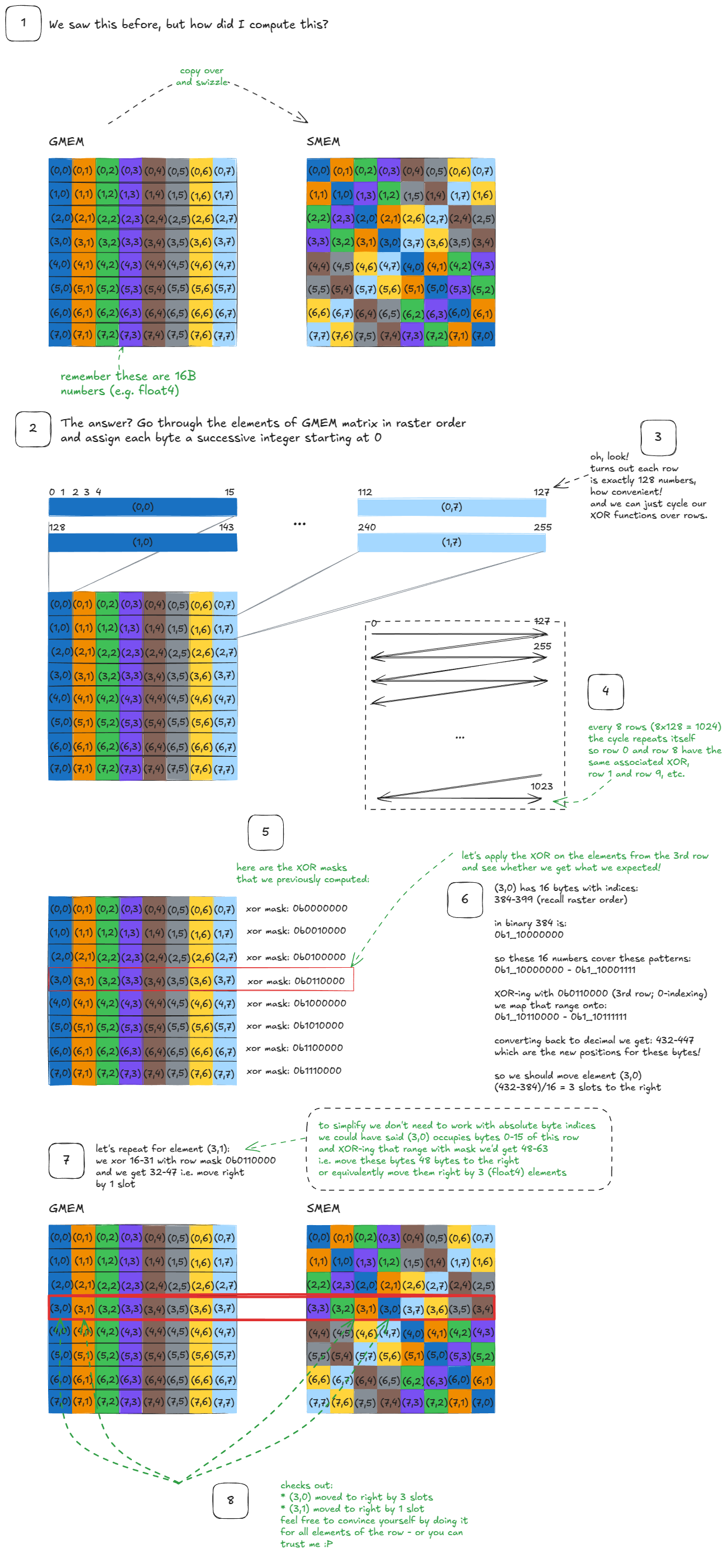 - 理解 CuTe Swizzling------32B、64B 和 128B 模式背后的数学原理https://veitner.bearblog.dev/understanding-cute-swizzling-the-math-behind-32b-64b-and-128b-patterns/