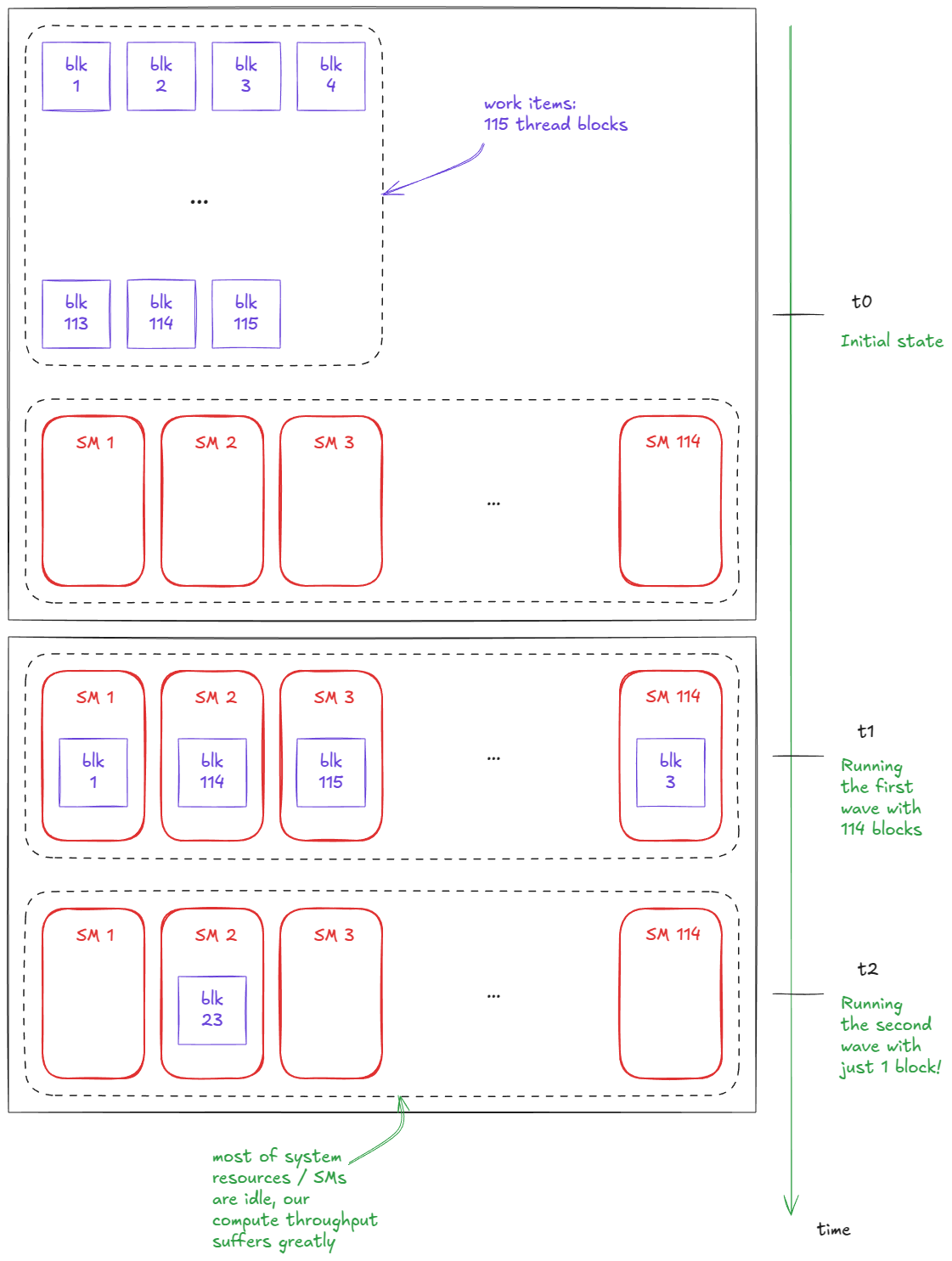 - 因此,每个SM平均需要处理约6.4个数据块。