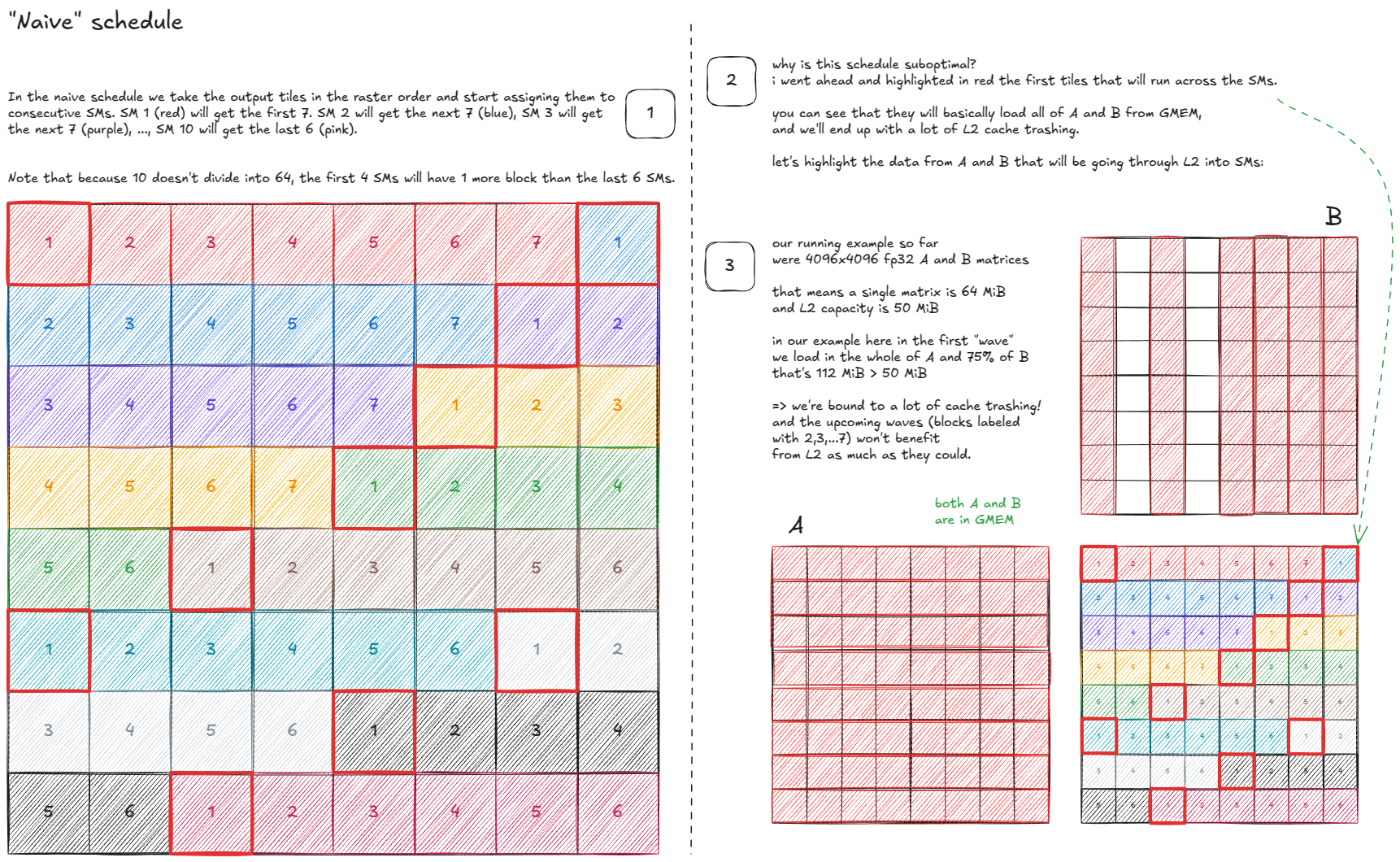 这就引出了一个自然的问题:每个SM应该处理输出图块的哪个子集,以及处理顺序是什么?