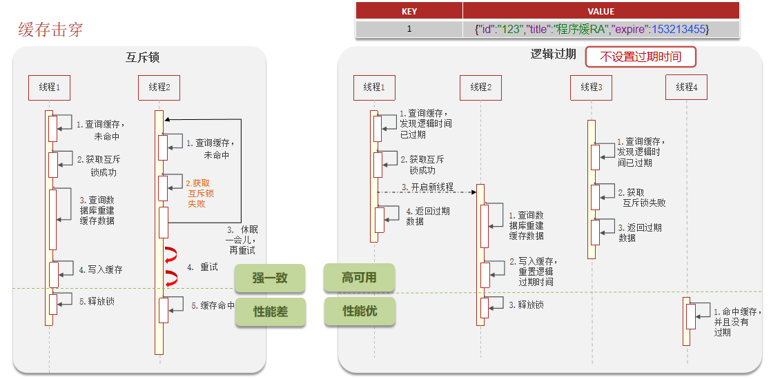 SETNX命令获取分布式锁) 去查询数据库并重建缓存。其他线程等待锁释放后,重新从缓存中读取数据。 -