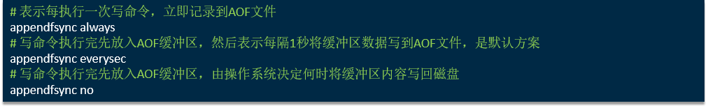 appendfsync everysec # 最多丢失1秒数据