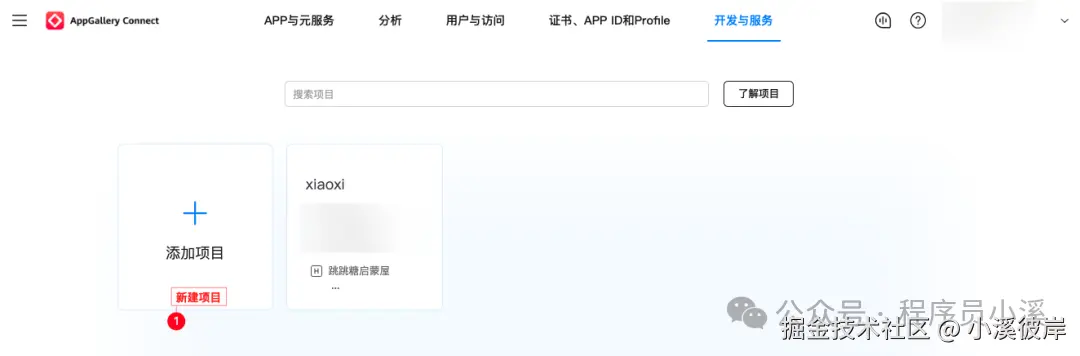 点击【开发与服务】,点击【添加项目】创建一个项目分组用于管理项目,后续会用到