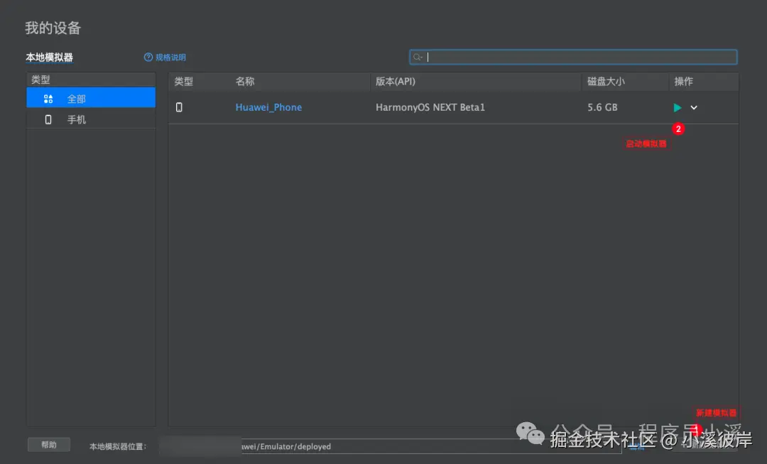 没有创建过模拟器,可以点击【新建模拟器】创建一个新的模拟器,创建完成后点击【启动】按钮启动模拟器