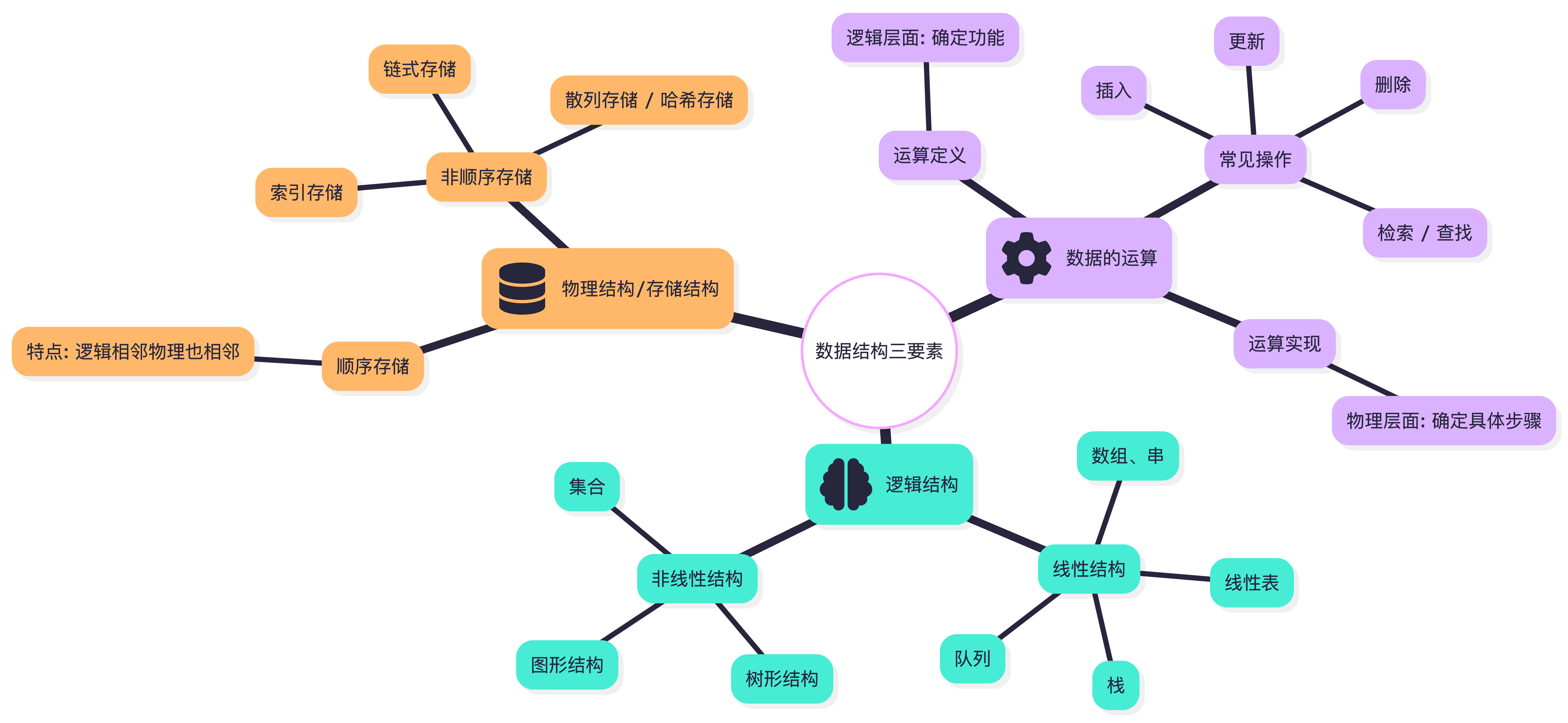 不同的物理结构必然有不同操作方式(运算)的实现