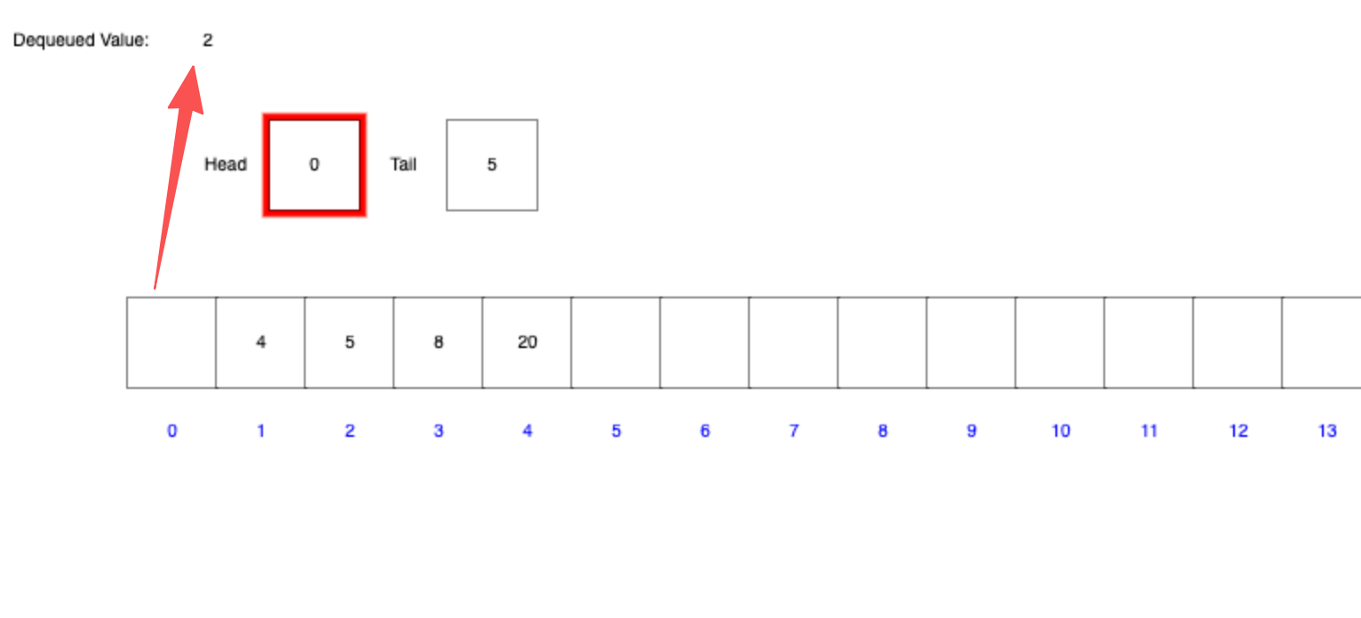 - 出队:只能从队首入队,即将删除数据时只能在 head 的位置删除