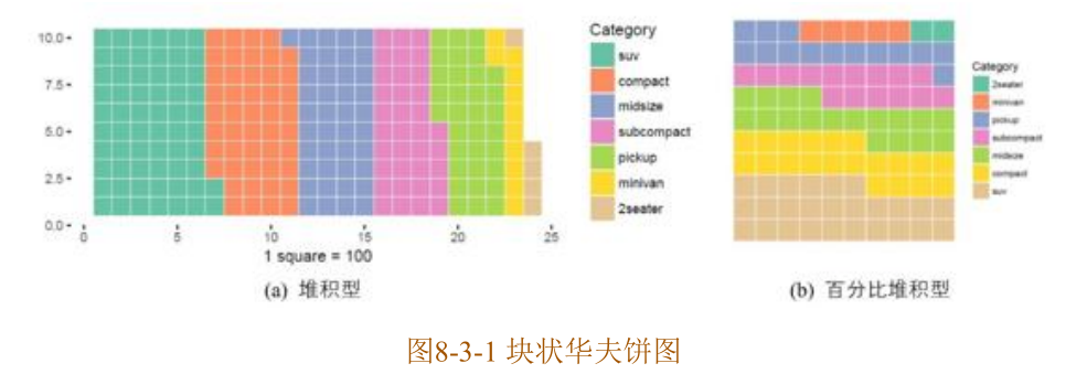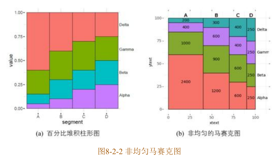 马赛克图可以清晰展现各个类型的不同属性的占比情况。
