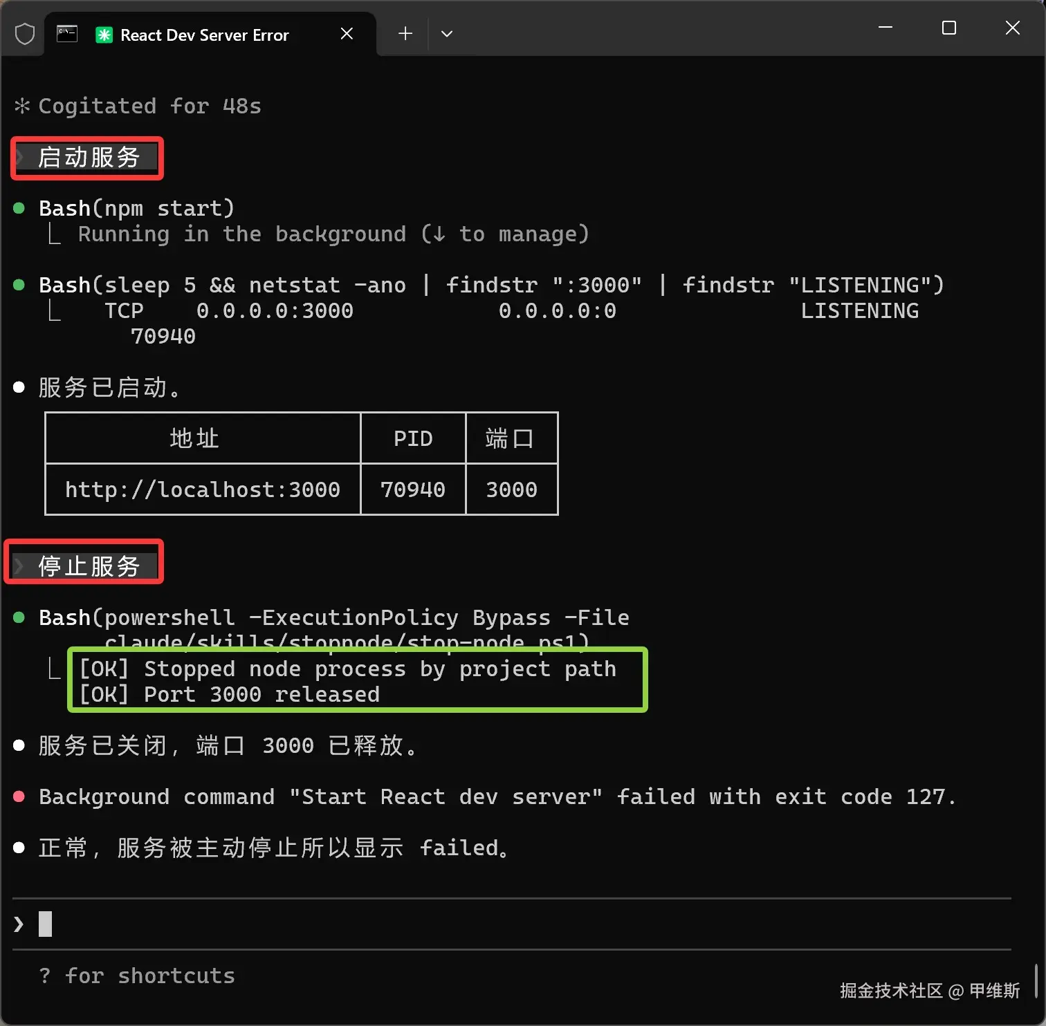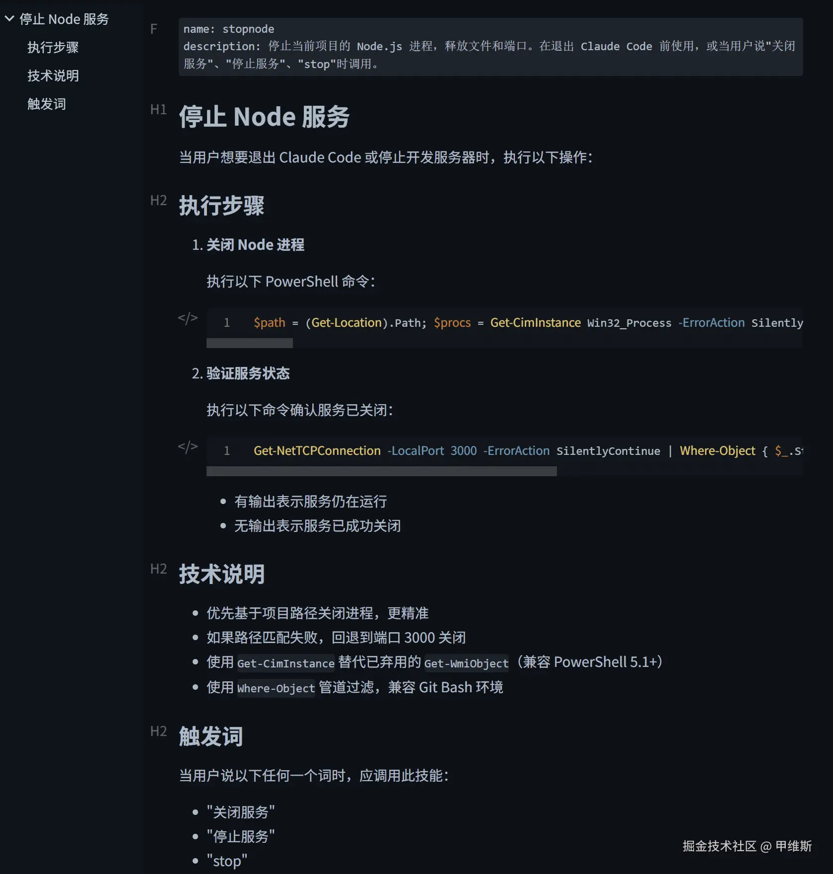 最终的方式是,它在技能里面创建了一个 stop-node.ps1 脚本。