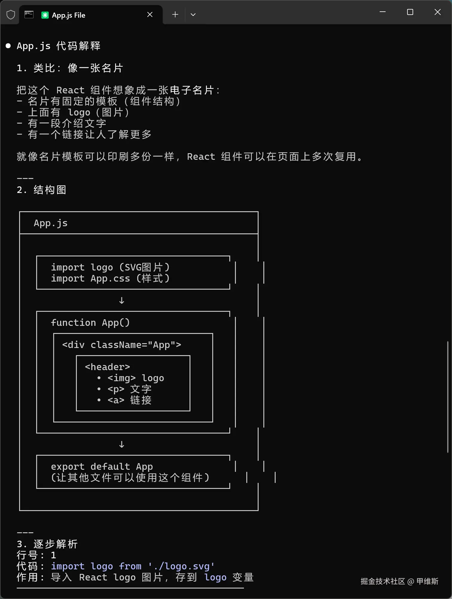 接下来我输入了 src/App.js,然后它输出了:
