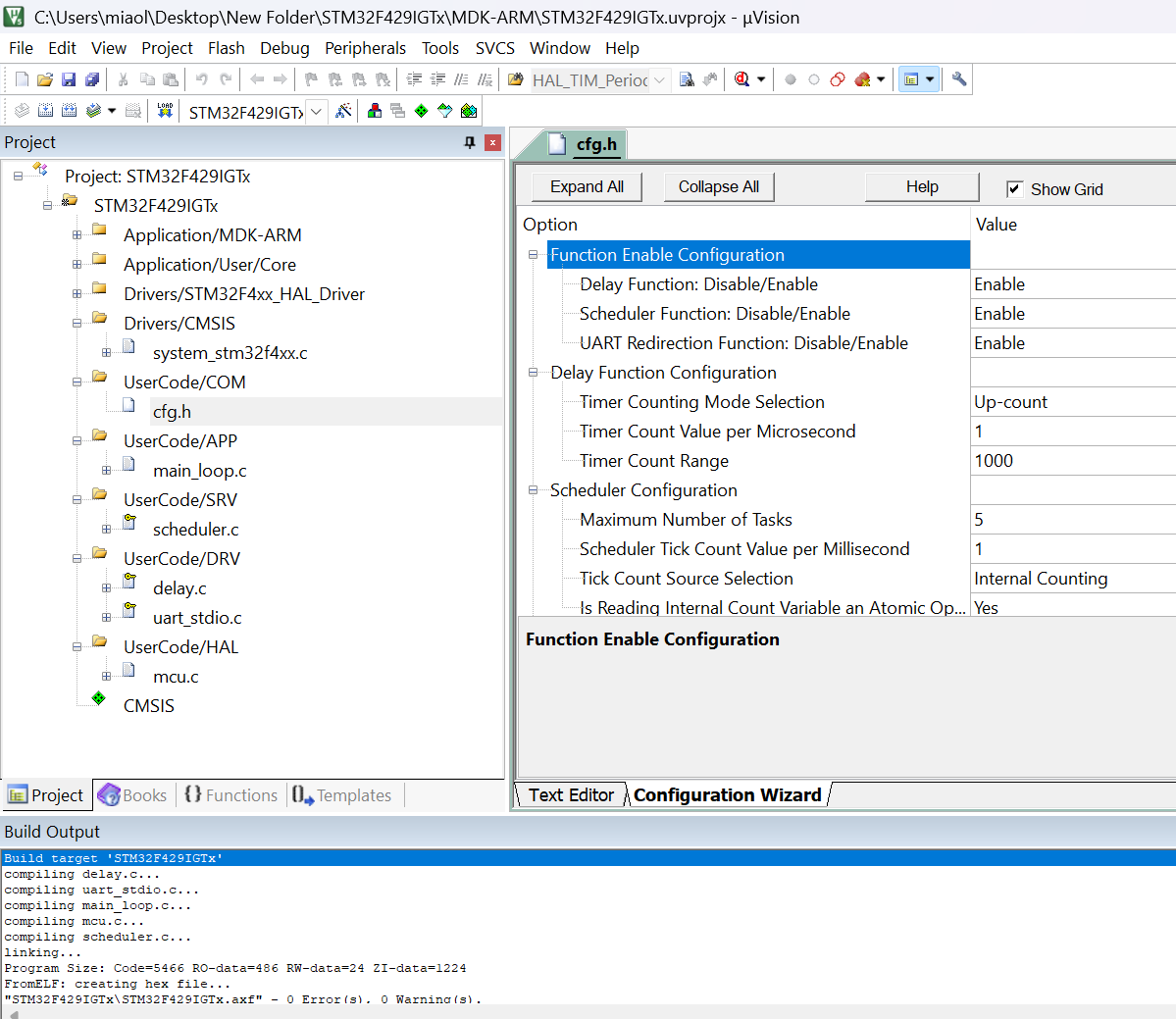 │ cfg.h // 全局配置中心(delay/uart/scheduler的开关、参数)