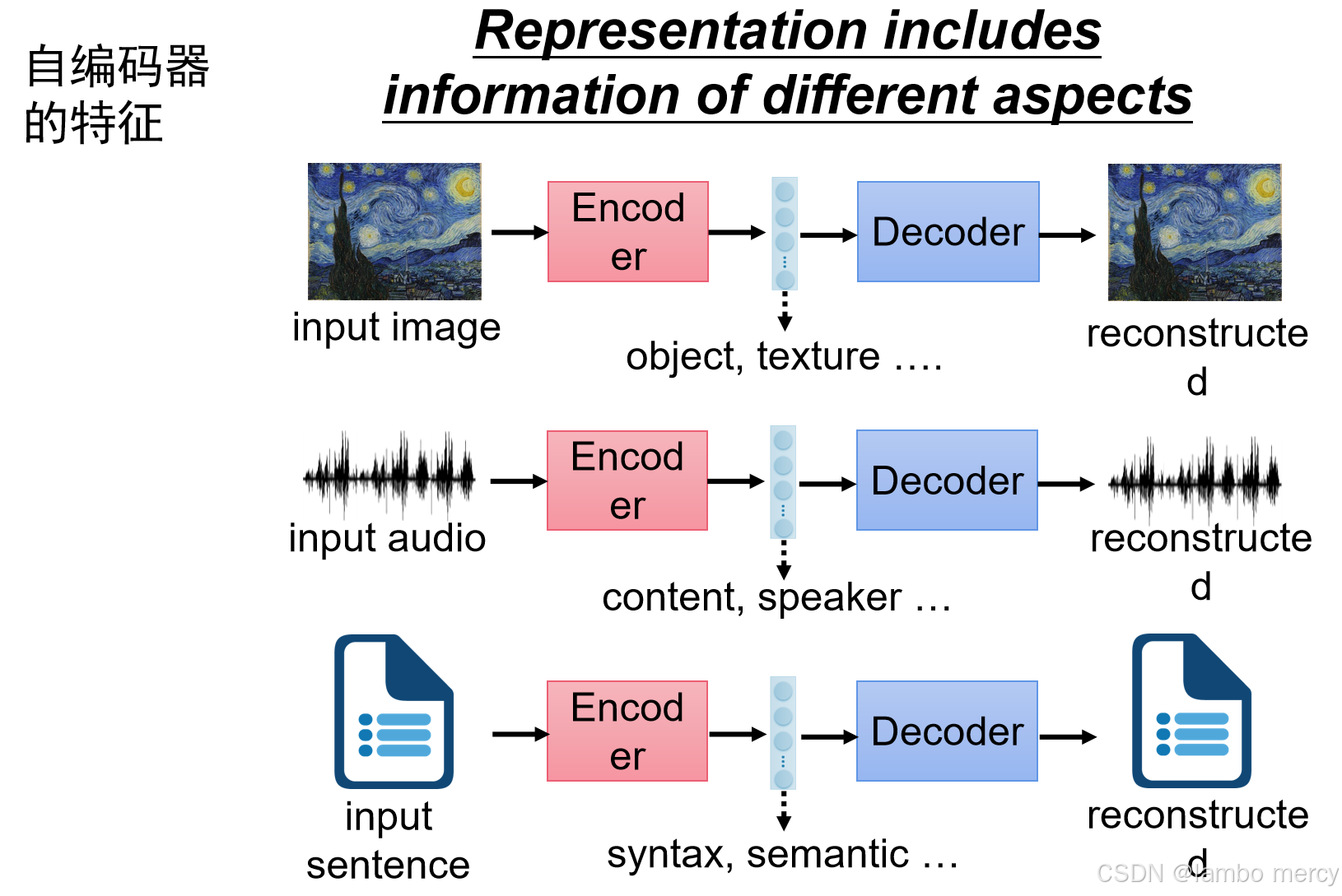 核心思想 :要求模型学习一种高效的"数据表示",使得从这个表示能尽可能好地重建原始数据。