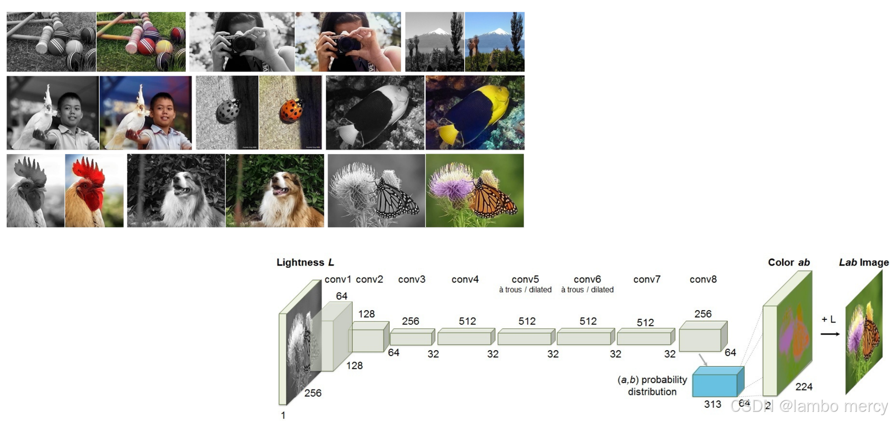 自监督学习(Generative Self-Supervised Learning)是一种让模型从数据本身生成监督信号的学习方法。它不需要人工标注的标签,而是通过设计巧妙的"任务"(称为代理任务或前置任务),让模型在完成这些任务的过程中,学习到对后续任务有用的特征。即把自己的一部分当作学习的目标。如下图,就是通过使用灰色照片还原出原本的彩色照片。