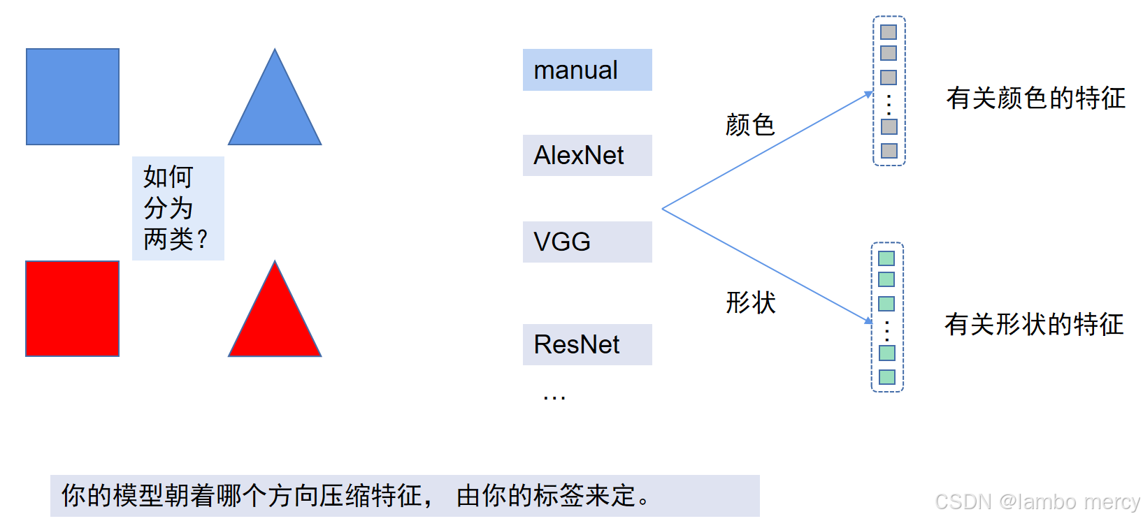 通过这两个例子,我们可以看到模型会根据需要,提取不同的特征。
