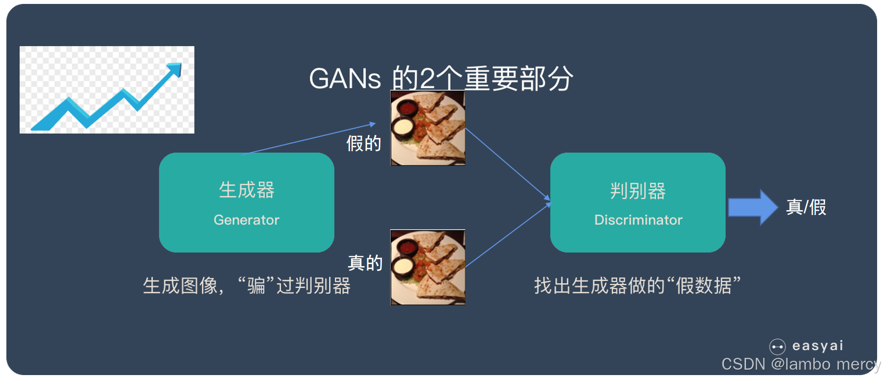 生成对抗网络(GANs) 是一种深度学习模型,由两个神经网络(生成器和判别器)通过对抗训练的方式学习数据分布,从而生成逼真的新数据。GANs的核心思想是"博弈论中的零和游戏",生成器和判别器相互竞争,最终达到动态平衡。