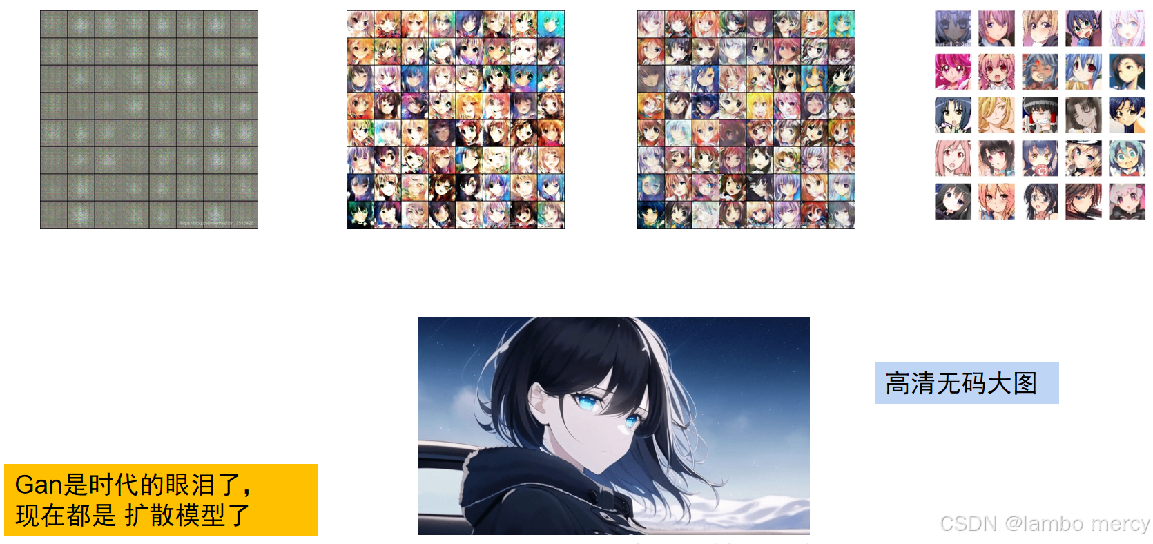 - GAN的"创新能力差",无法像扩散模型一样使用多模态任务(文字+图像),而且扩散模型还能生成一些未见过的概念。