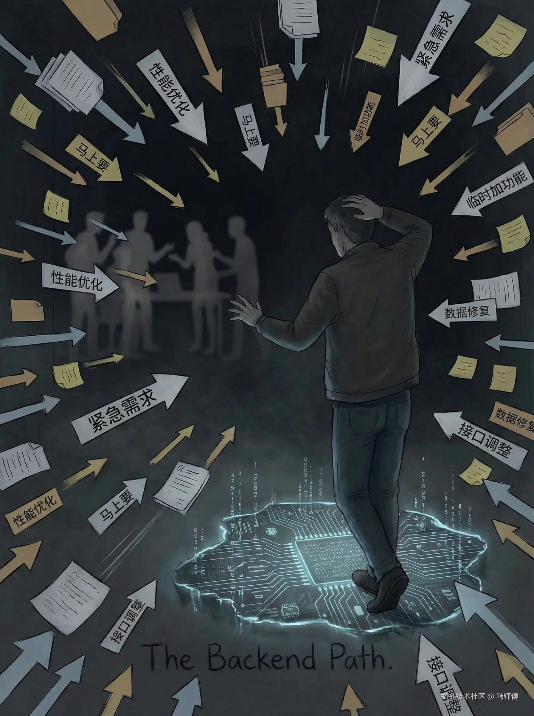 "视觉同盟"指的是曾经还能靠设计、交互抵挡一部分不合理需求。 但如今:设计形式主义 + AI模糊生成,让前端/设计逐渐退出,后端独自往黑洞走。