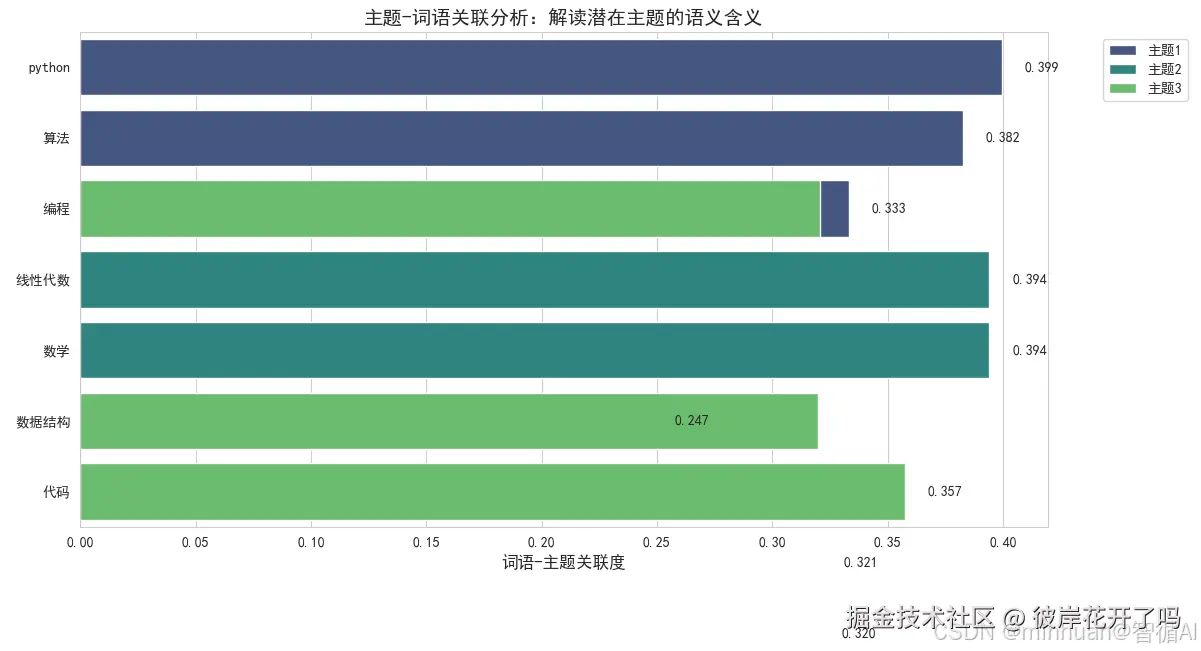 topic_data.append({'主题': topic, '词语': term, '关联度': score})
