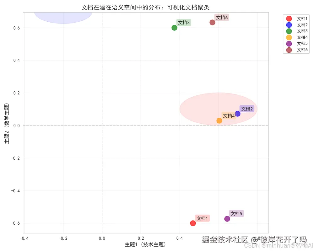 - 相似主题的文档如何在空间中聚集