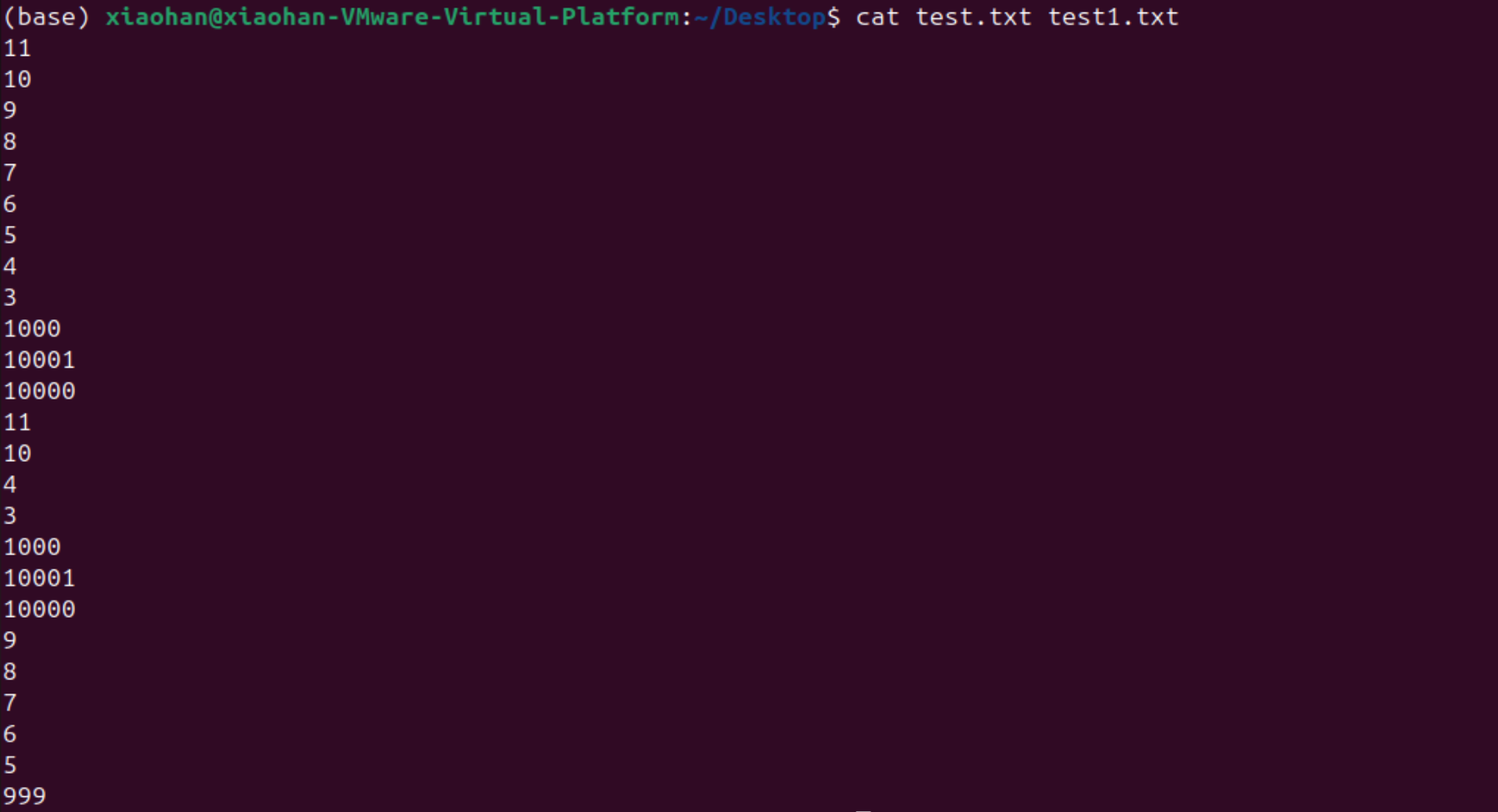 下面将10和11也填入test.txt文本文档中