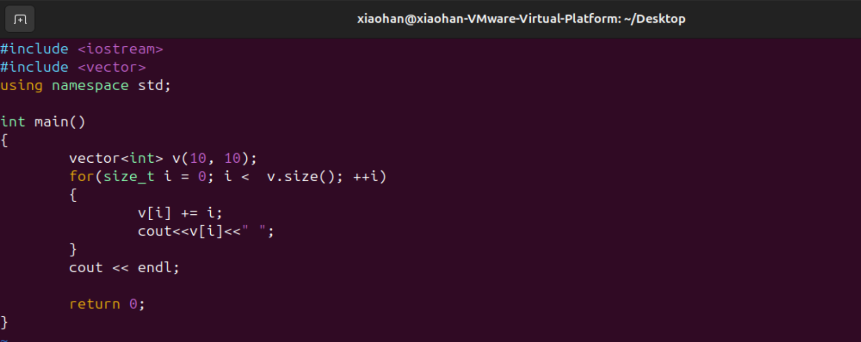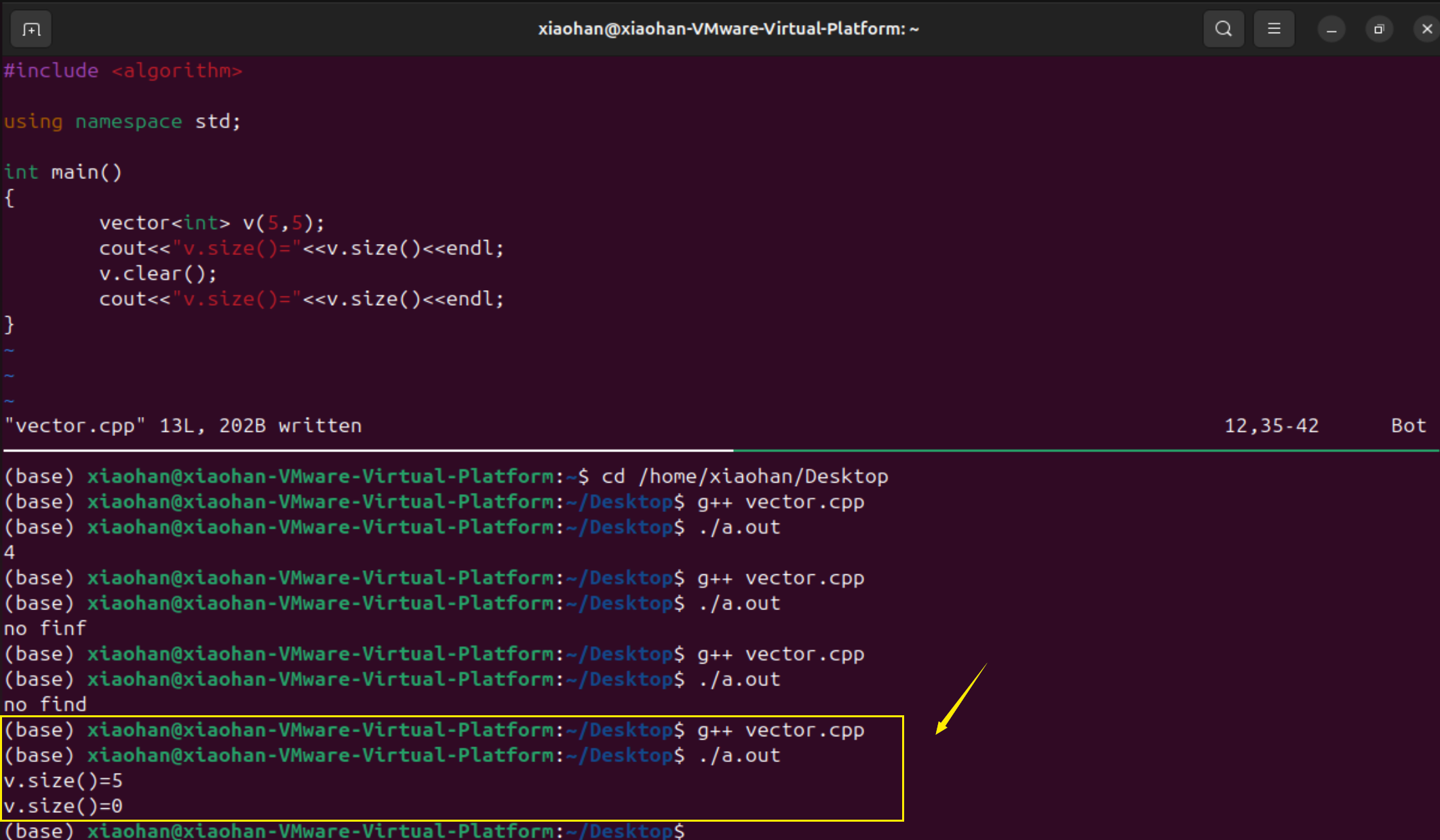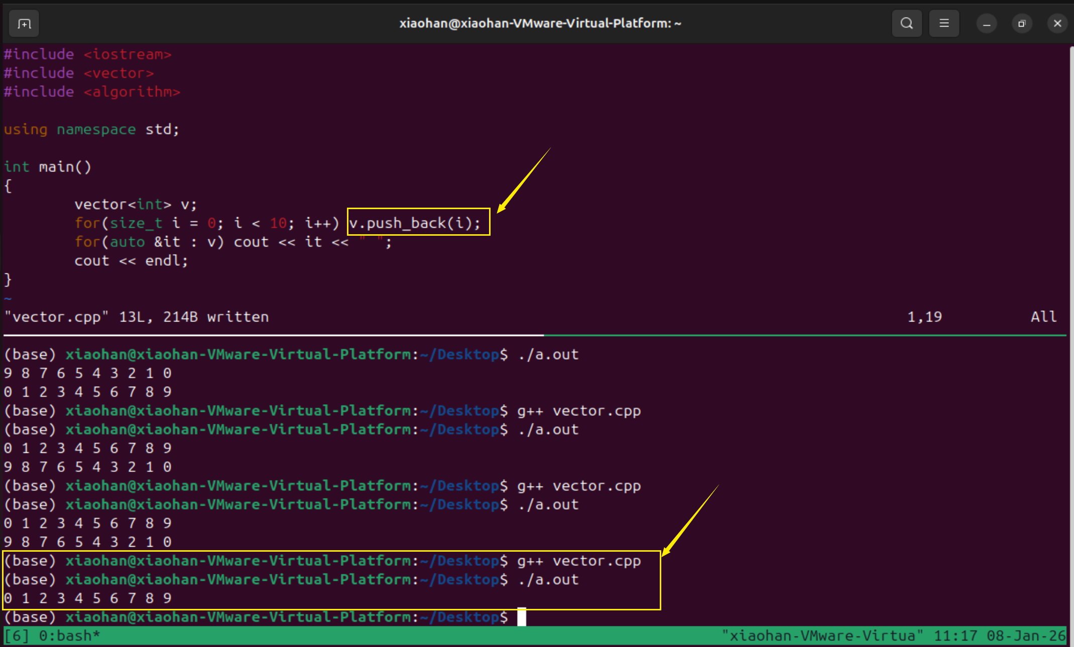 修改程序vector为从9到0,之后再进行排序输出,说明排序生效了