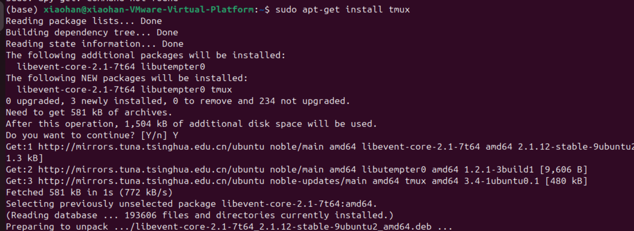 再输入tmux命令