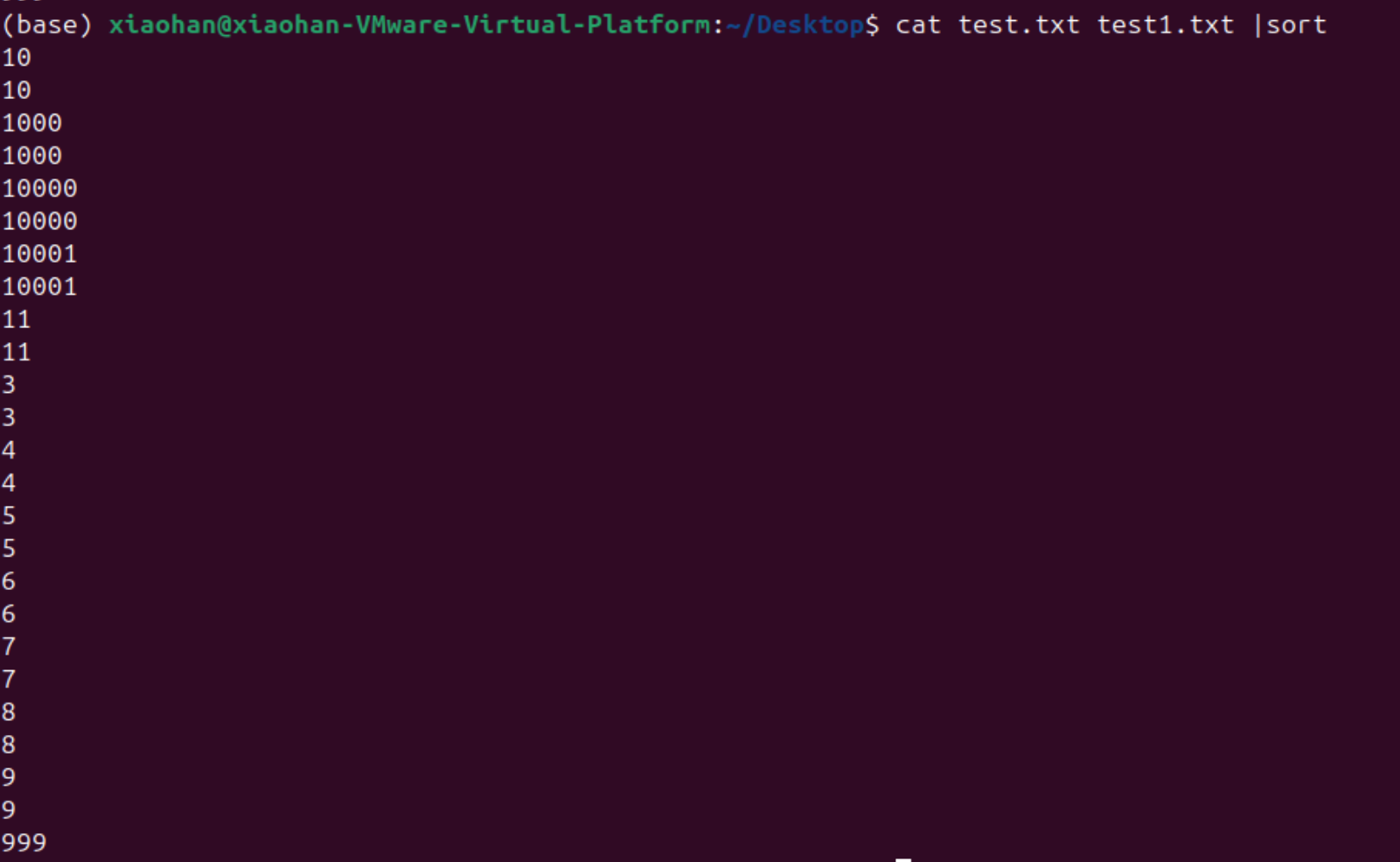 之后再用sort命令进行排序,将两个文件合并到一起进行排序
