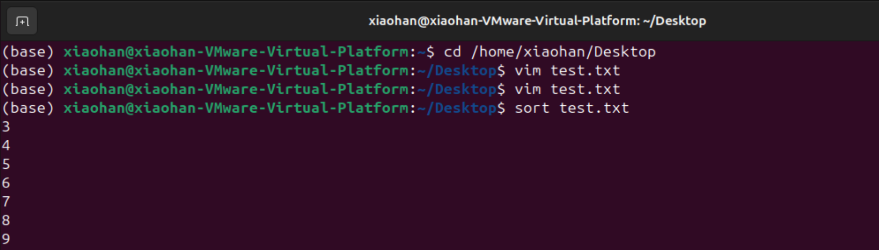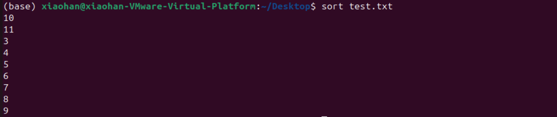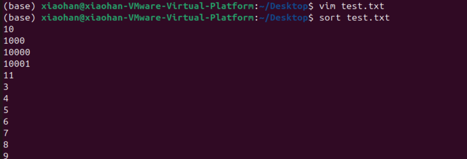 输入sort命令进行排序,输出结果如下图所示。