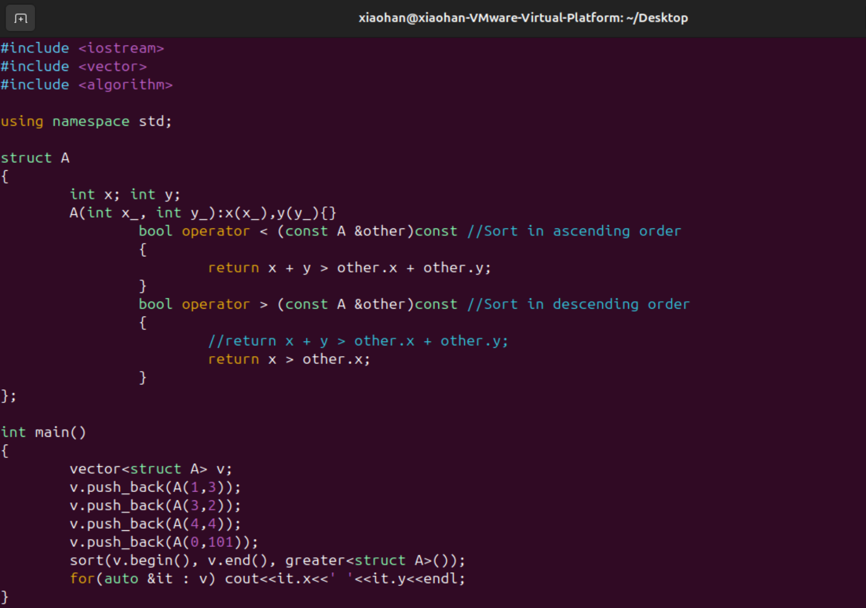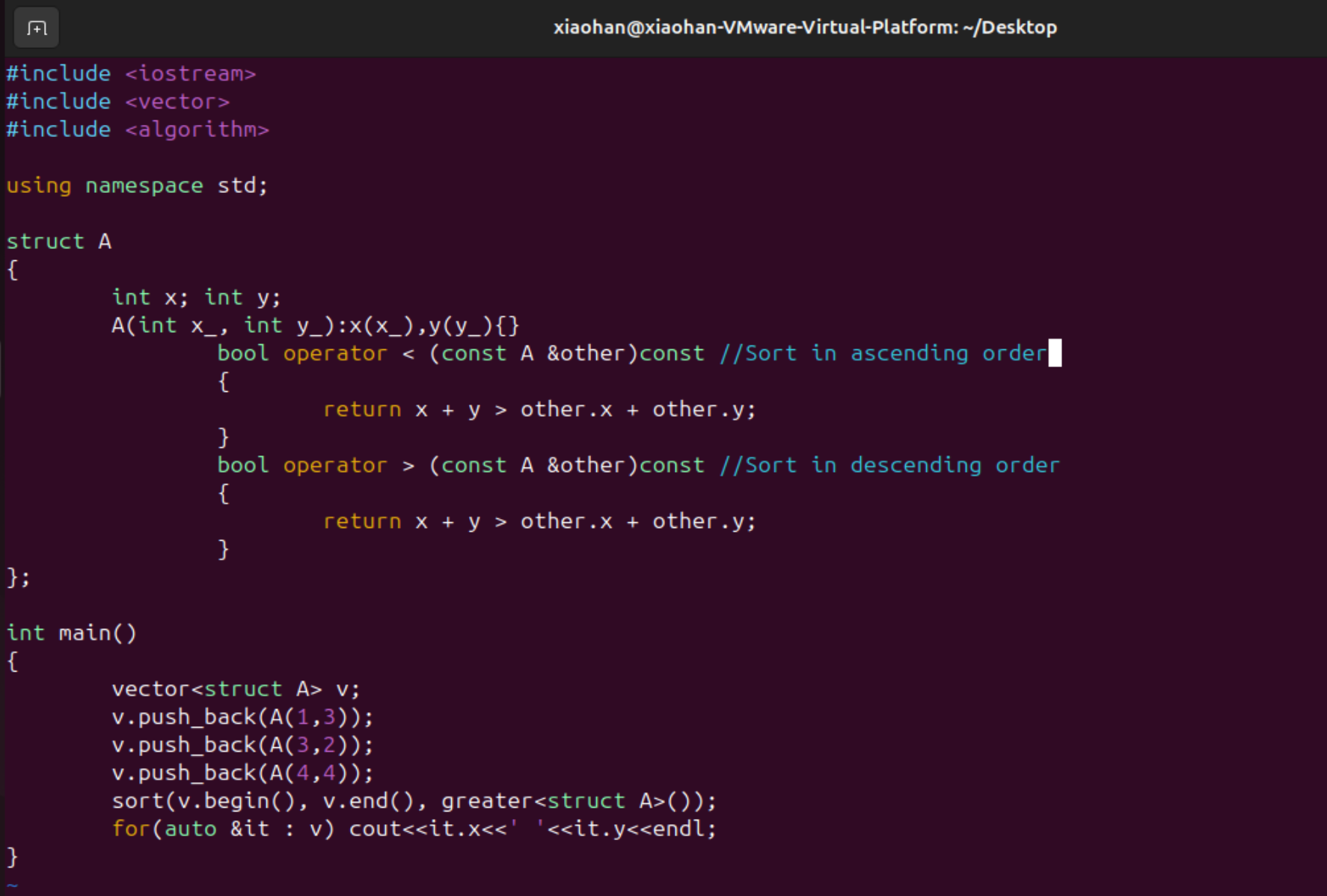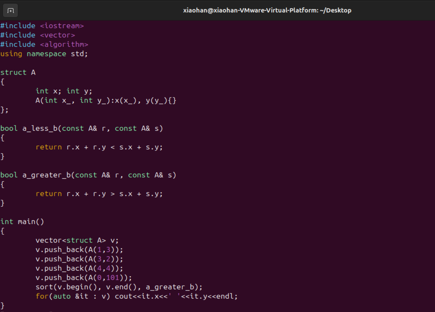 比如说结构体A可以理解为某二维坐标,现在想要寻求横纵坐标加和越大越好,就是将两个和较大的排在前面