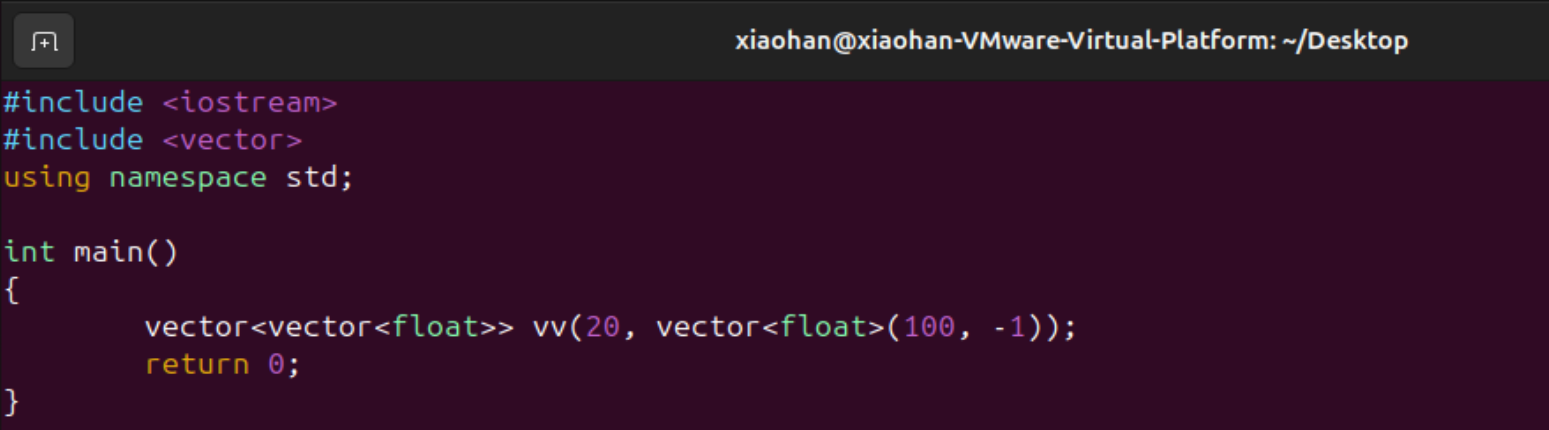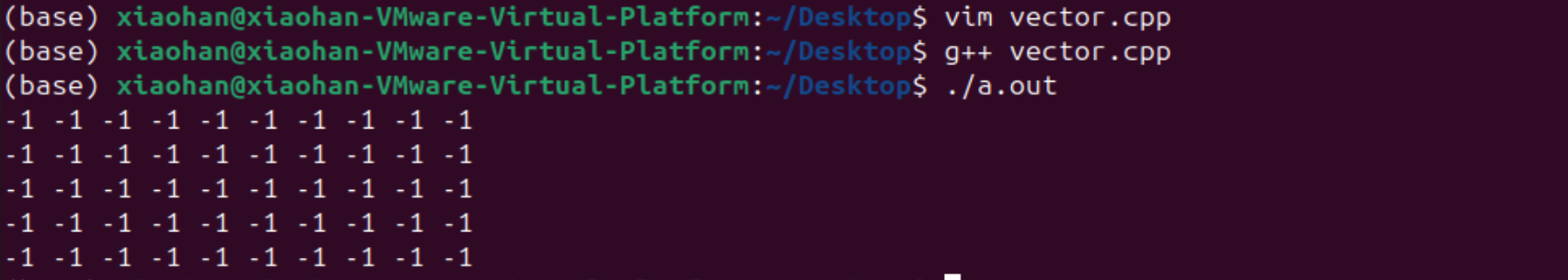 下面演示创建一个20行100列且元素都为-1的二维vector