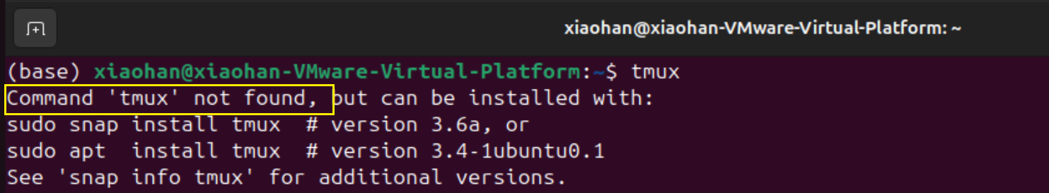 首先检查是否已经有tmux,如下图所示,说明没有安装