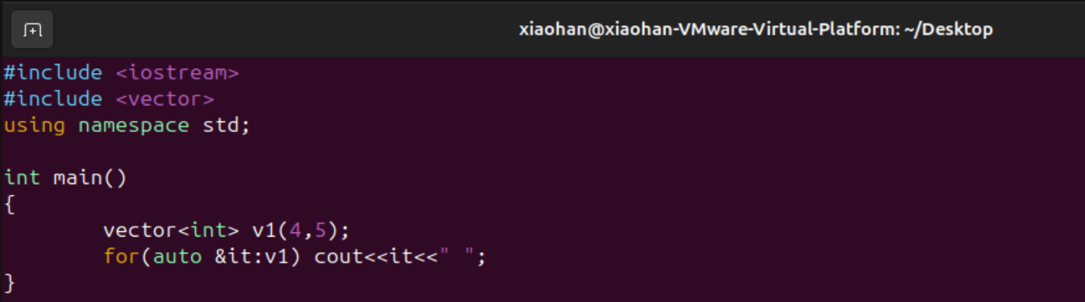 使用4个5来初始化vector,如下图所示。