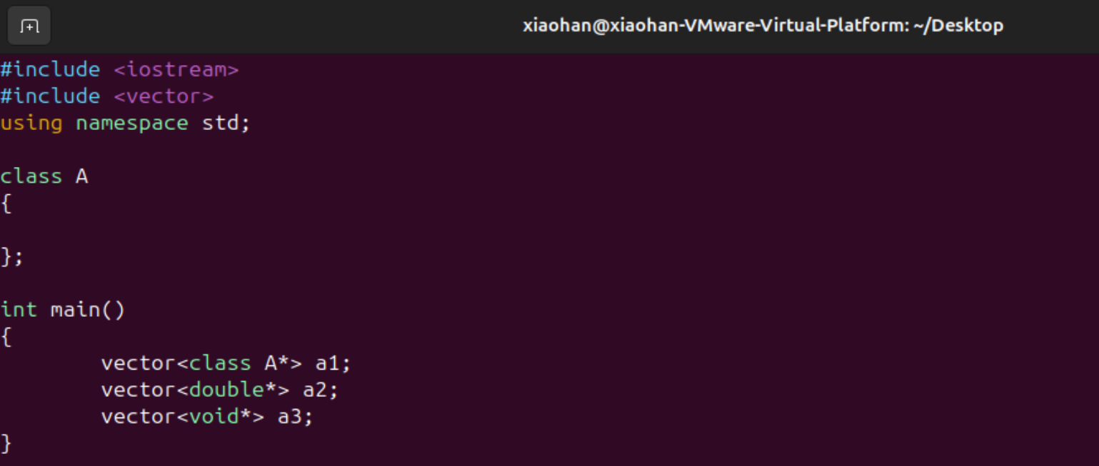 vector也可以存放指针类型,如下图所示。