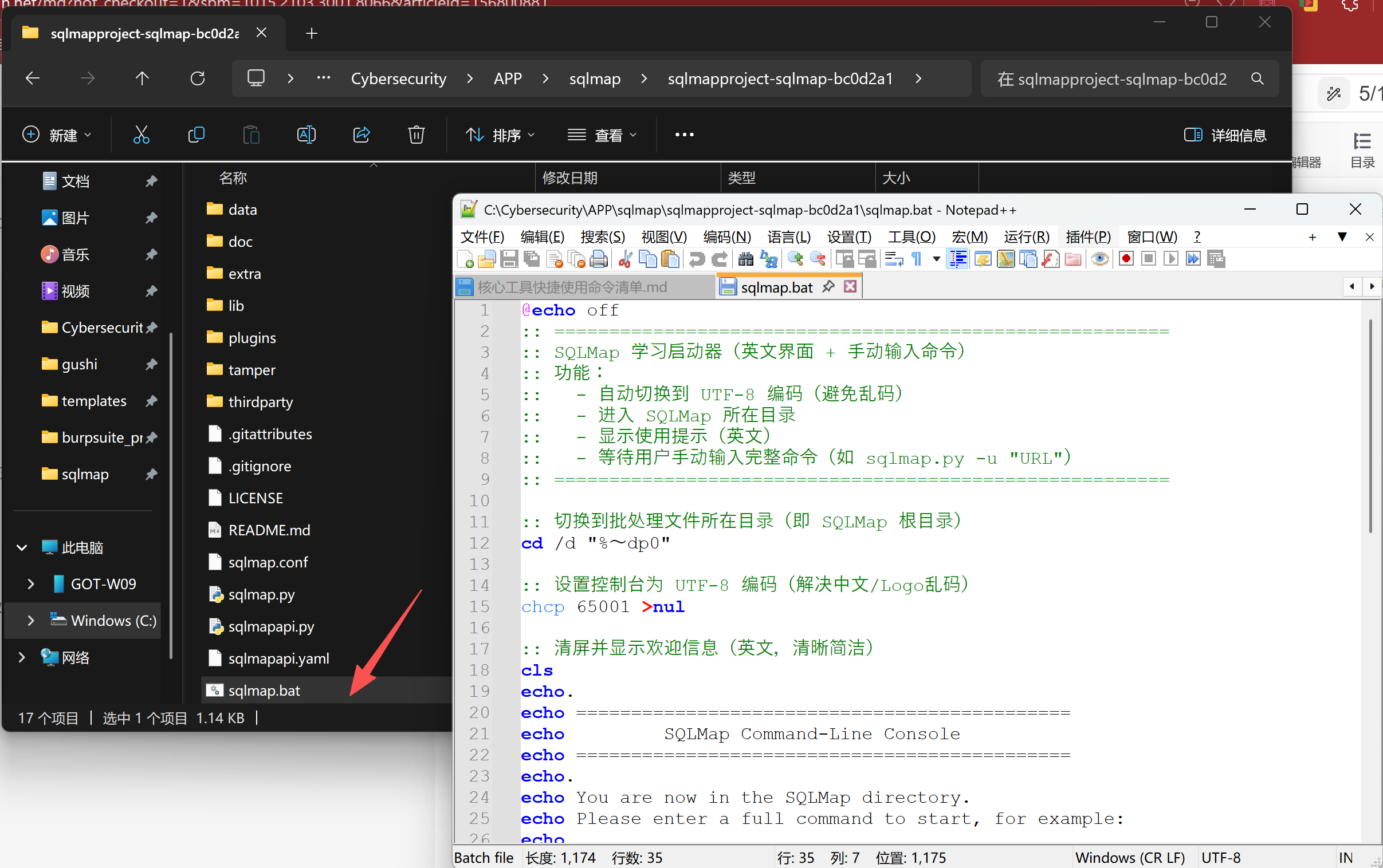 确保你的 SQLMap 文件夹结构如下: