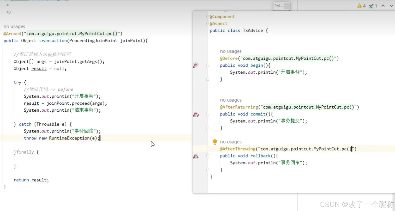 - [简化了前面 4种(@Before、@AfterReturning、@AfterThrowing、@After)](#简化了前面 4种(@Before、@AfterReturning、@AfterThrowing、@After))