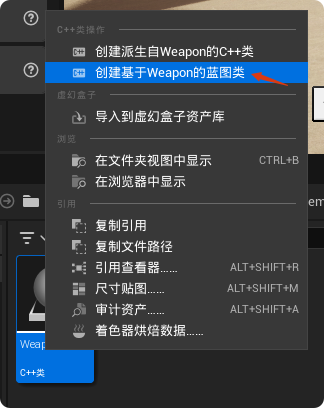 代码创建好后,再创建一个基于Weapon的蓝图类