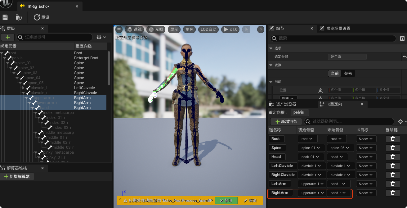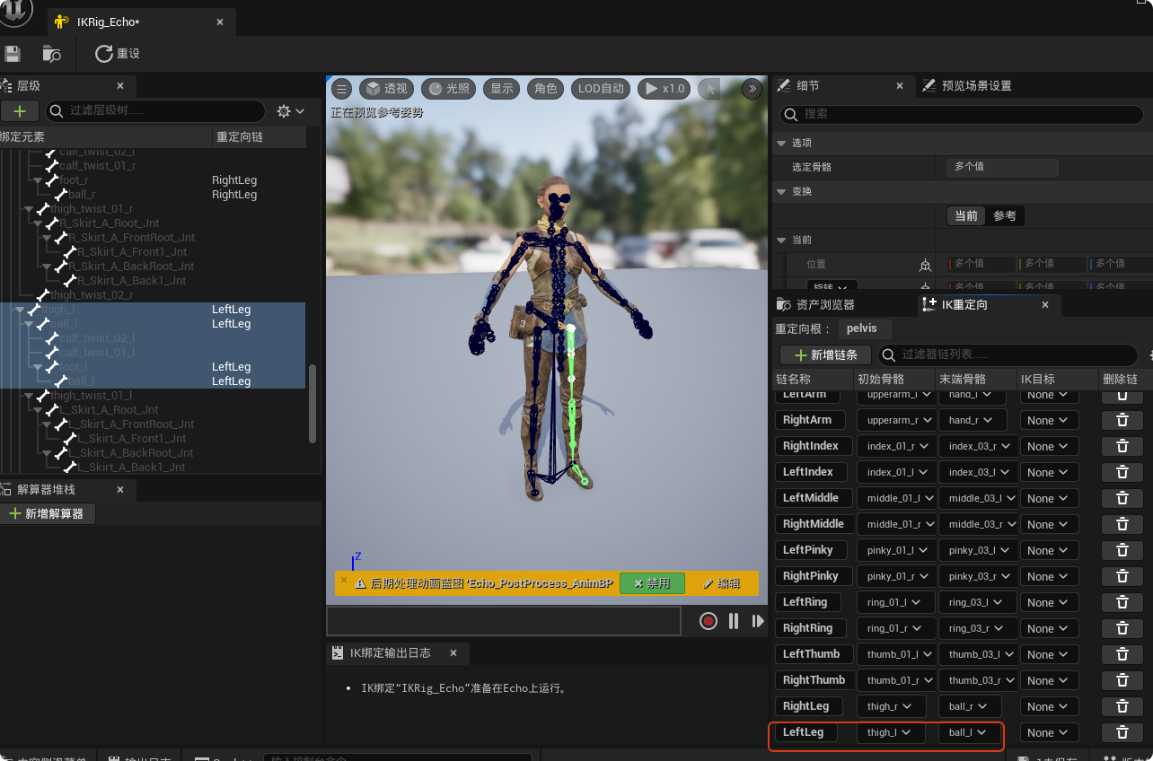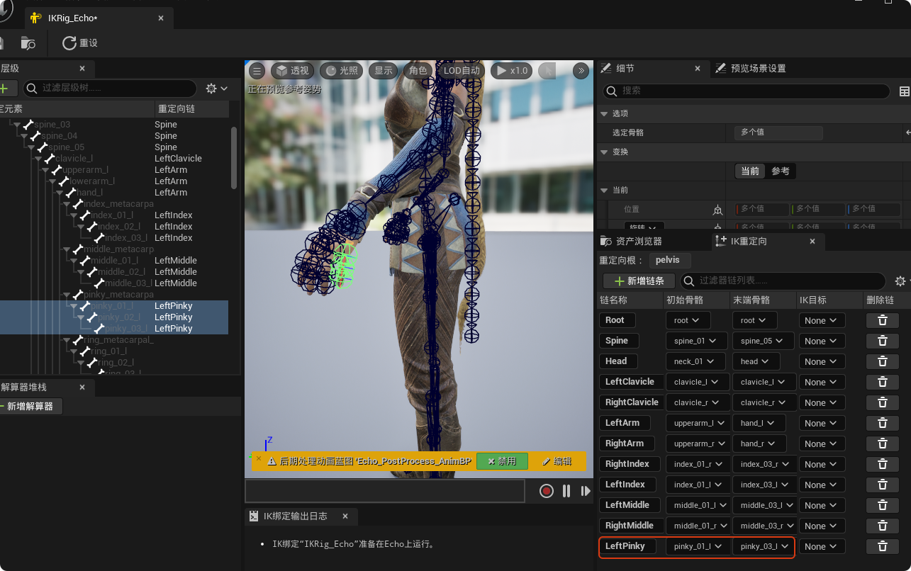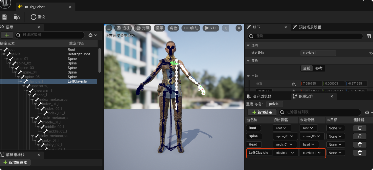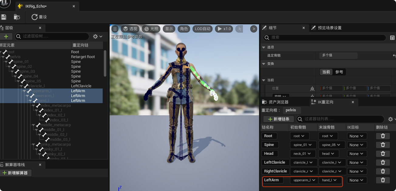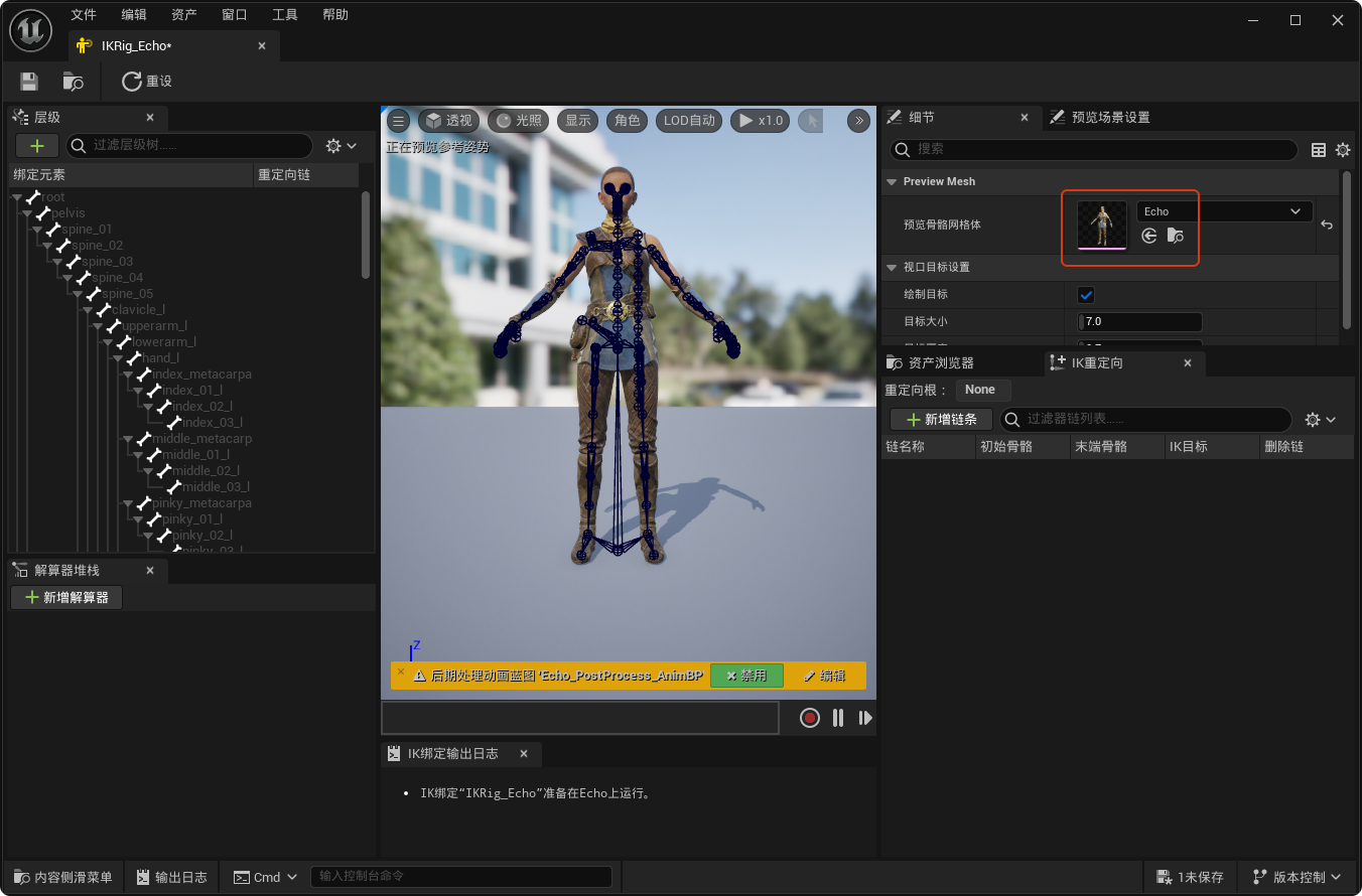打开"IKRig_Echo",预览骨骼网格体设置为"Echo"