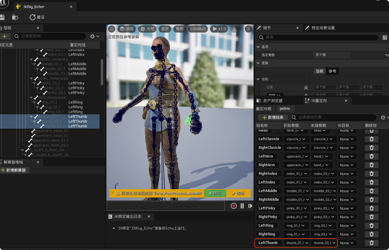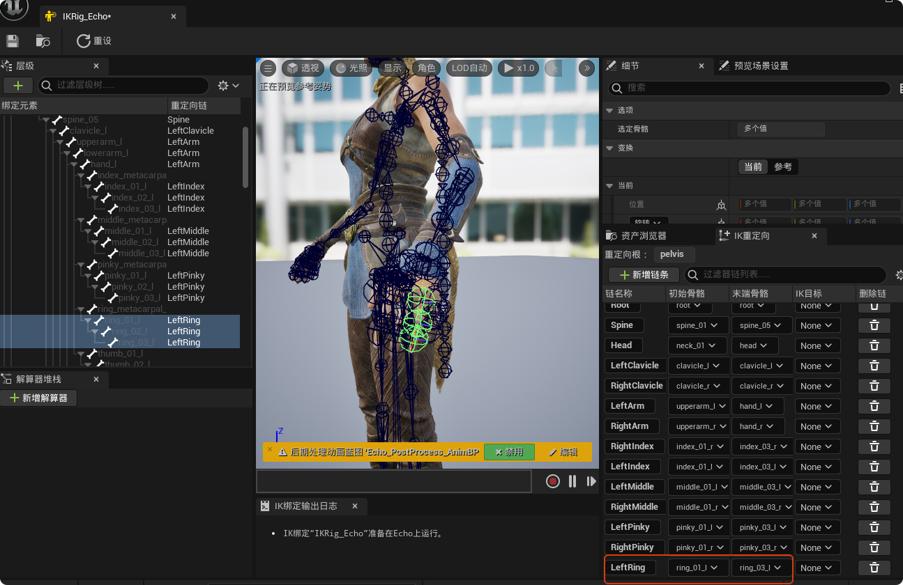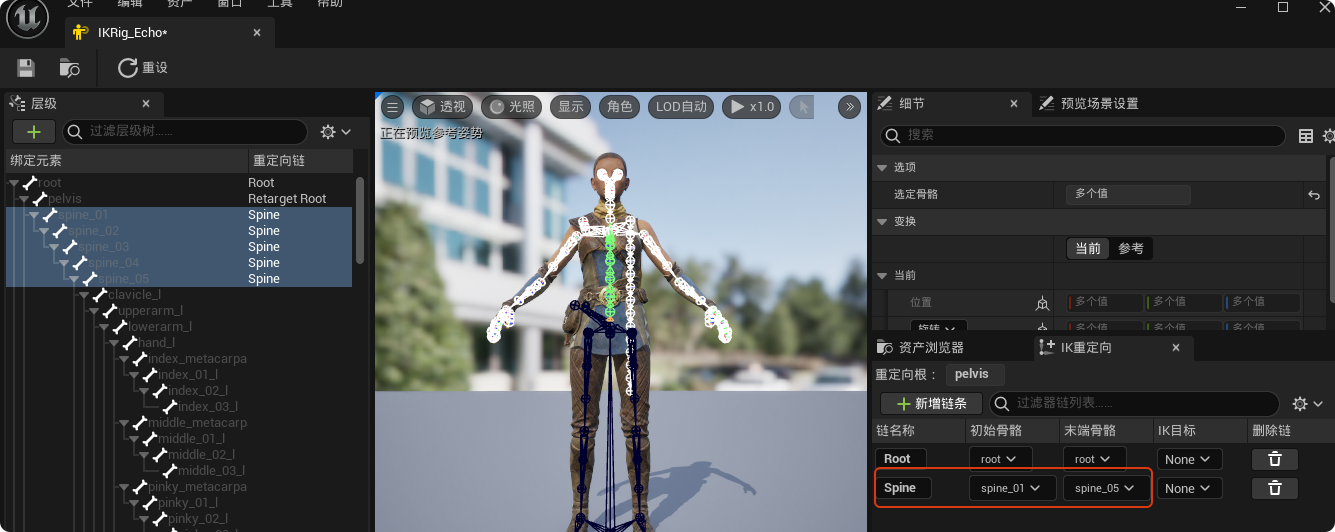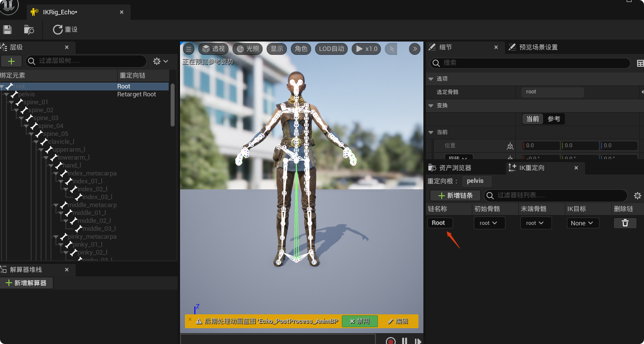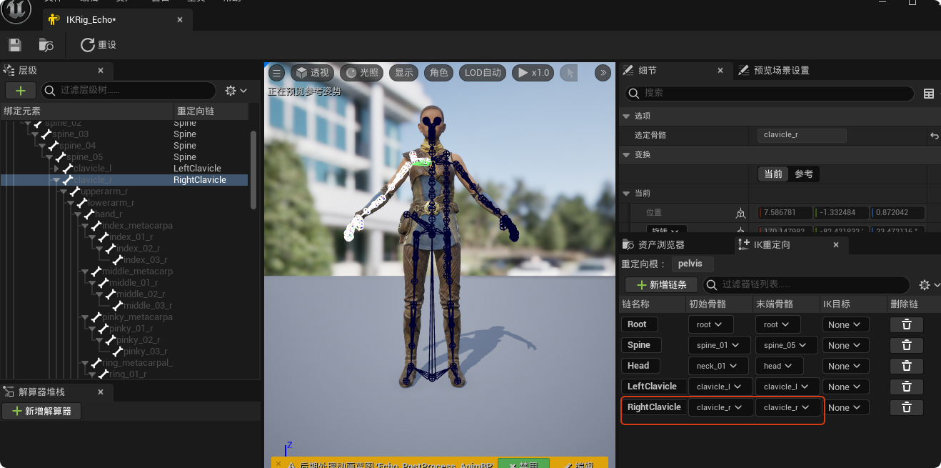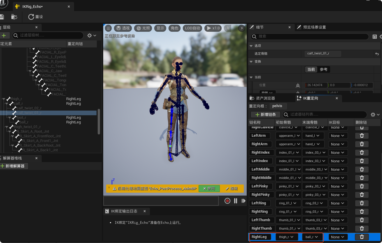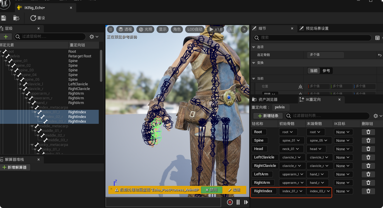 打开"IKRig_Echo",预览骨骼网格体设置为"Echo"