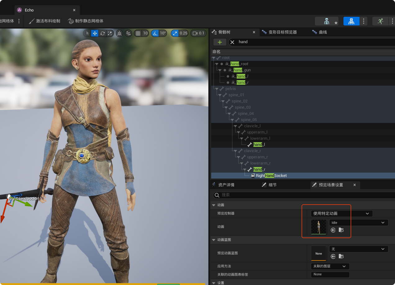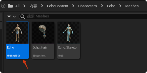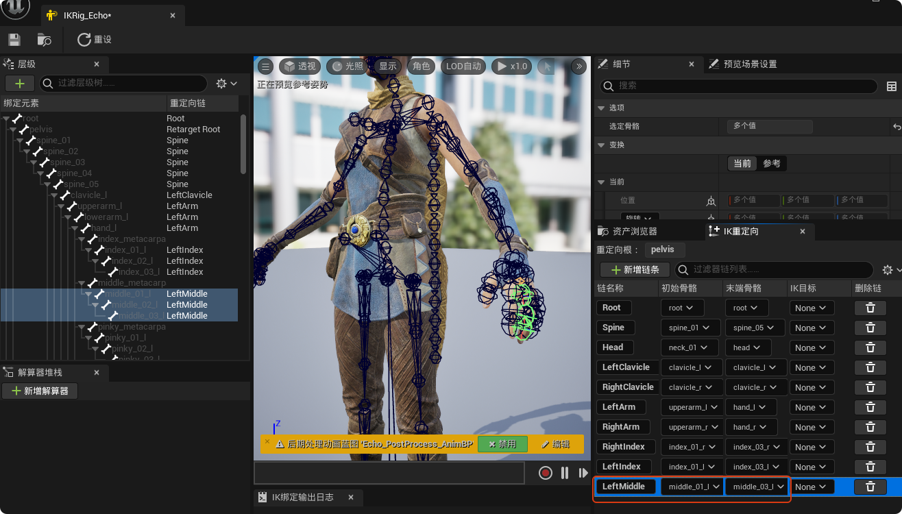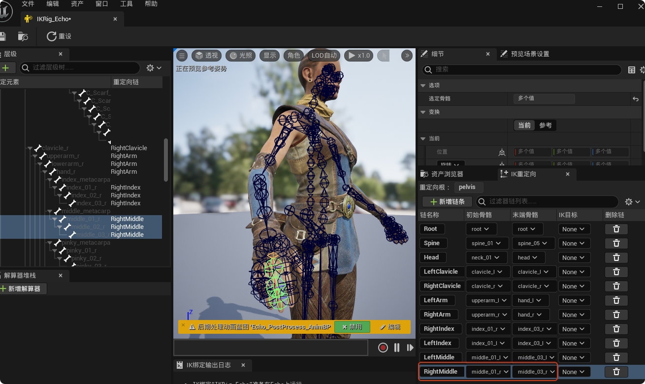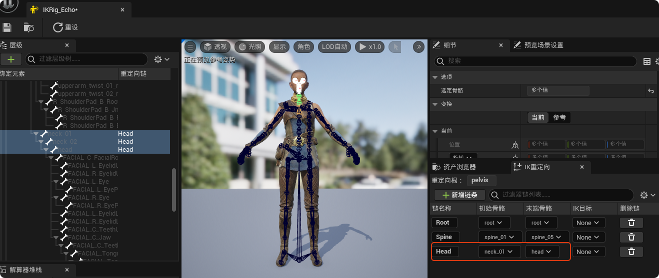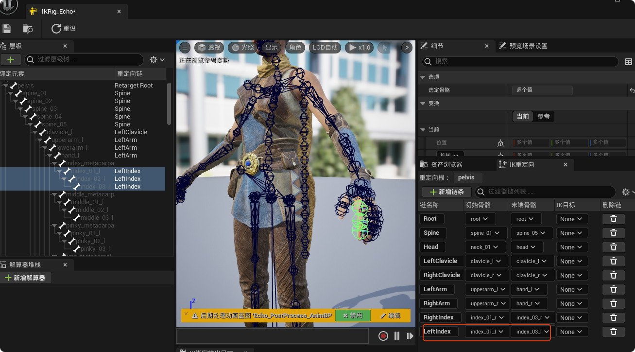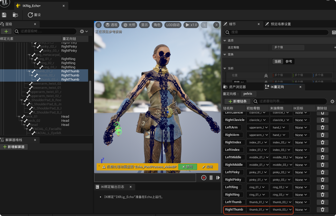 打开"IKRig_Echo",预览骨骼网格体设置为"Echo"